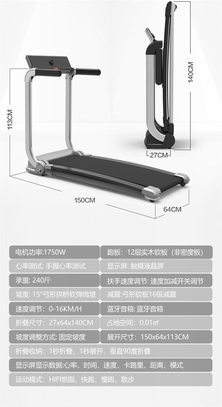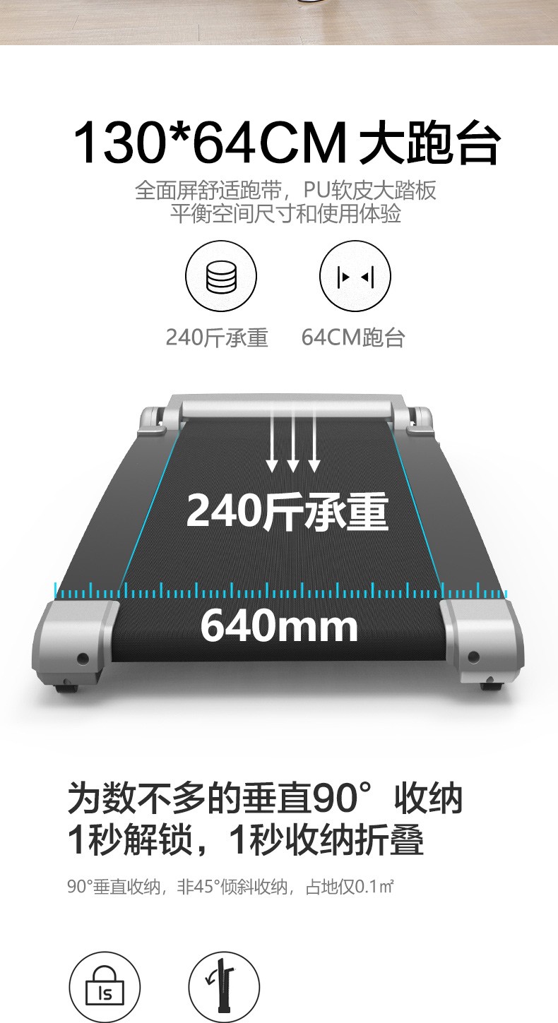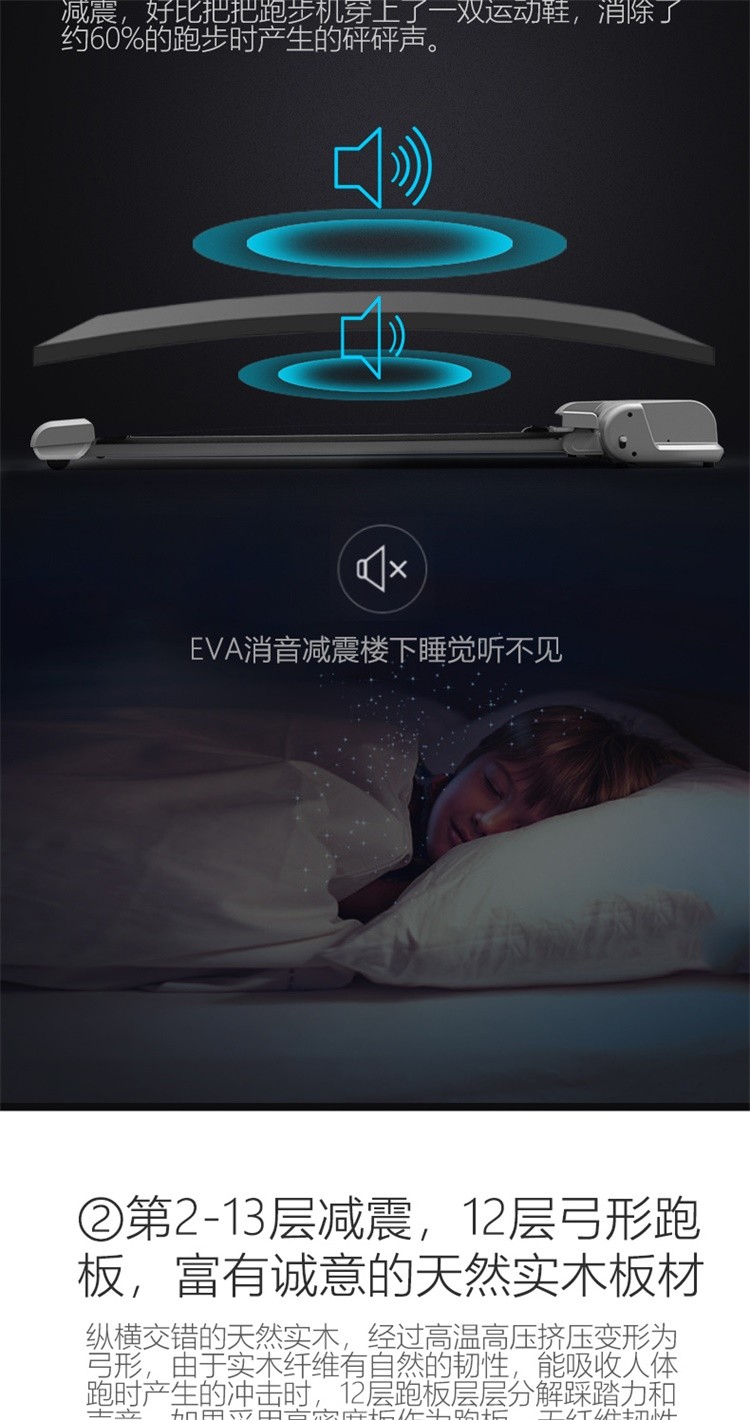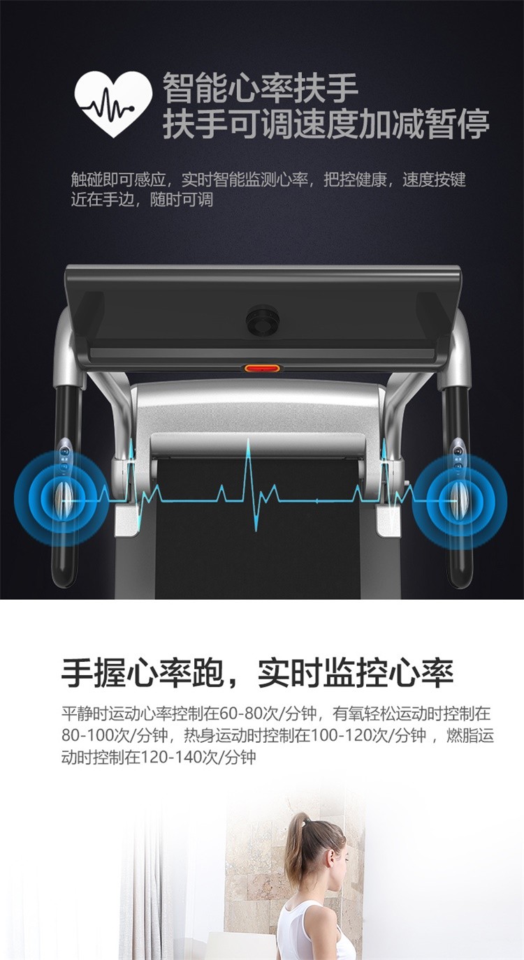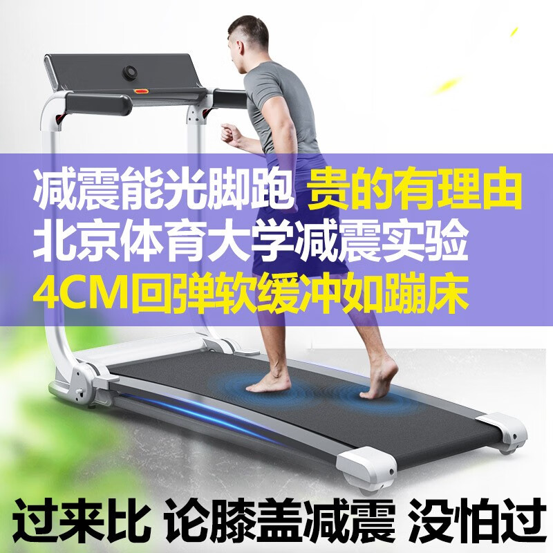 柔性软板跑步机,16级减震消音,16层层分解。不同于硬跑板。我们弓形柔性软跑板技术经过北京体育大学研究,对比测试的是德国价值18万元的HP系列专业跑步机.可以光脚跑,跑带高于跑台设计。自动校正跑带,折叠90°竖立,液压杆调节降落。