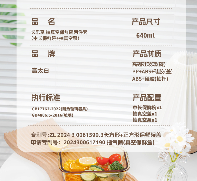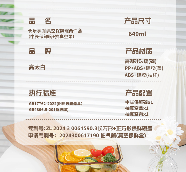 高太白长乐享真空中号保鲜碗2件套640ml GBXW011