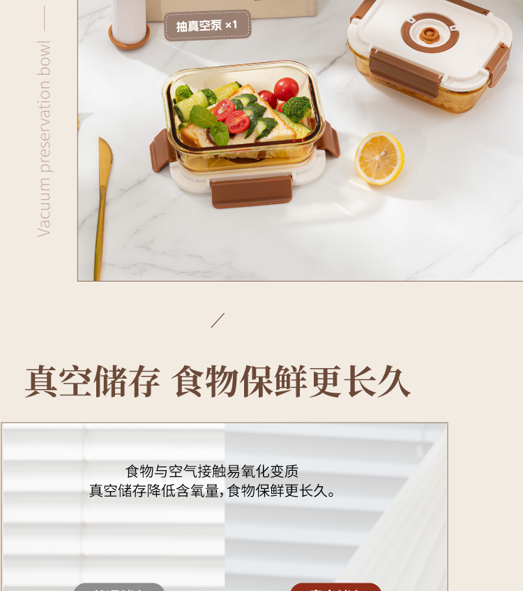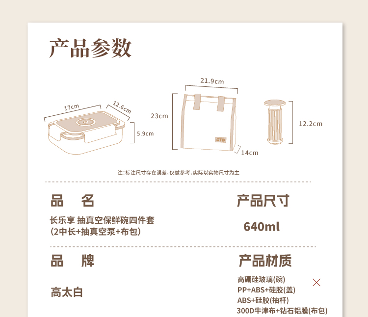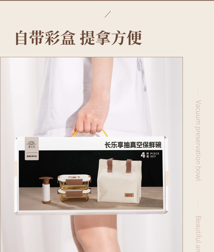 高太白长乐享真空保鲜碗4件套640ml*2 +包 GBXW025