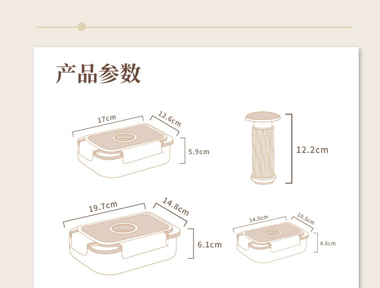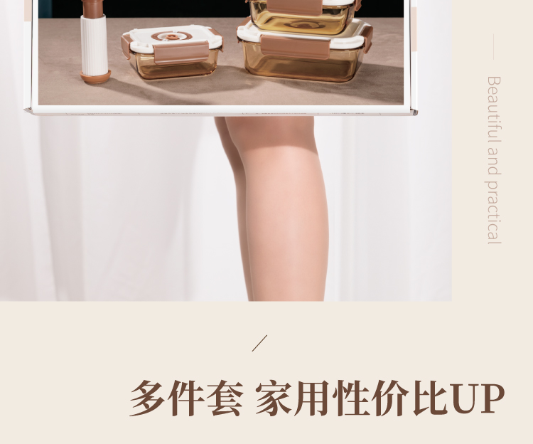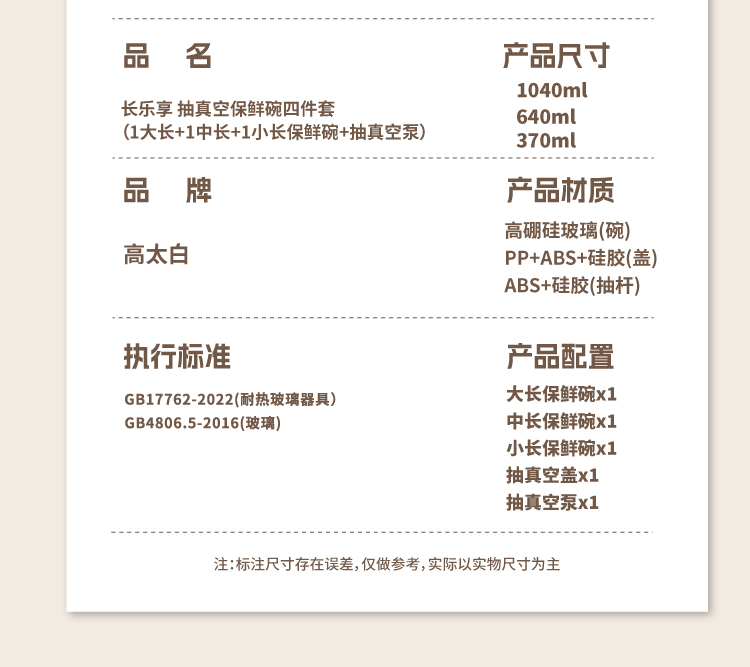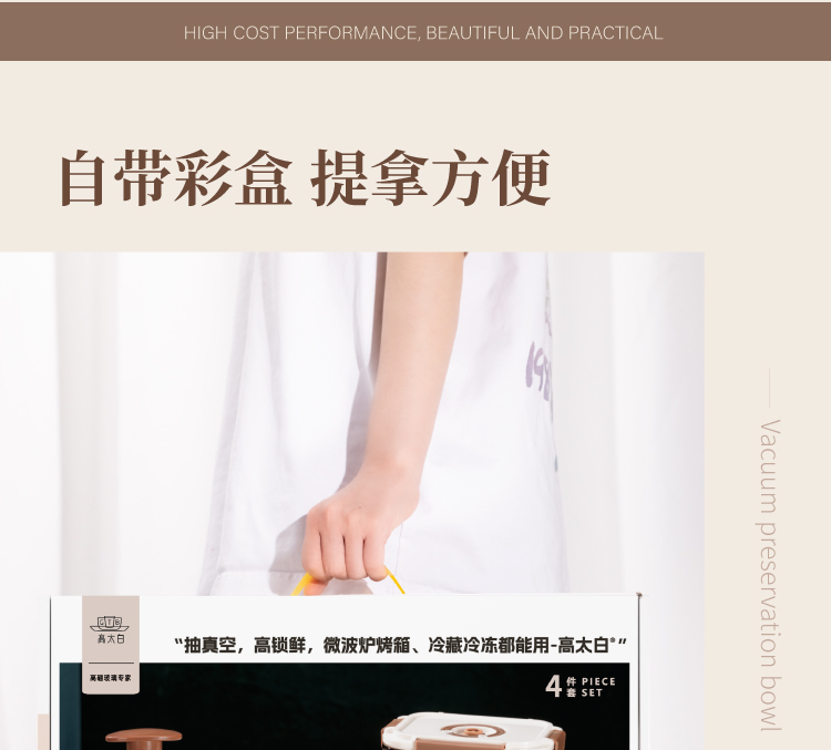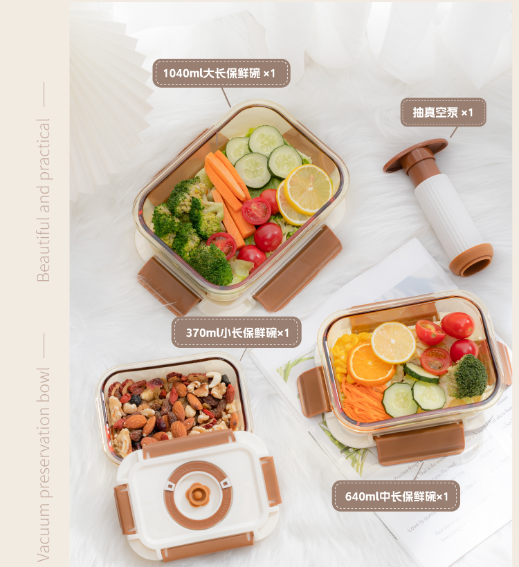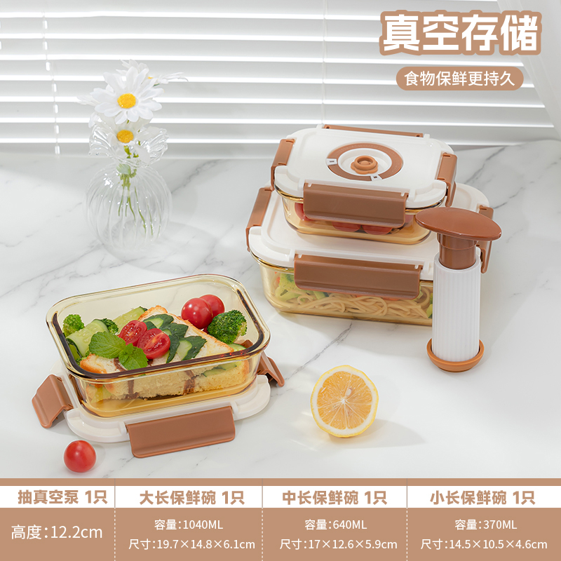 高太白长乐享真空保鲜碗4件套大长1040ml+中长640ml+小长保鲜碗370ml GBXW021