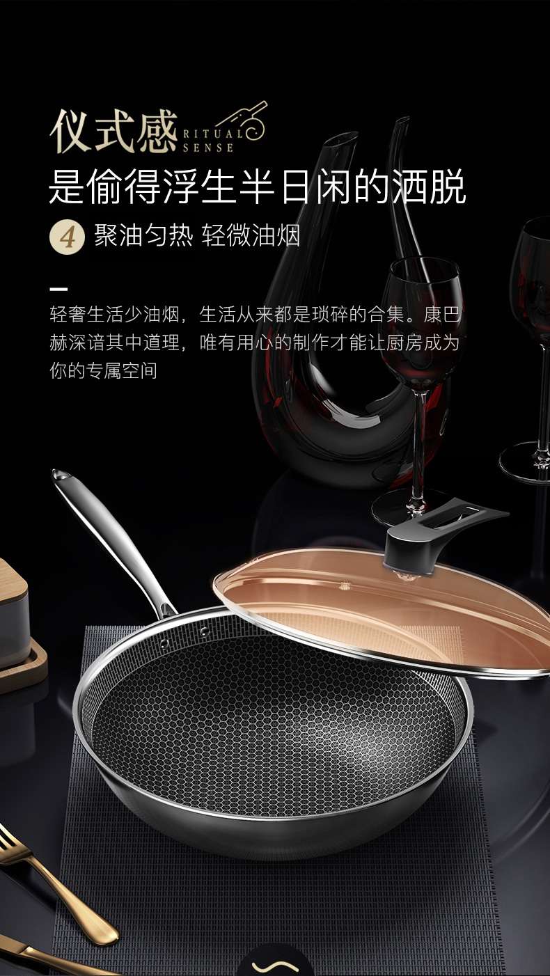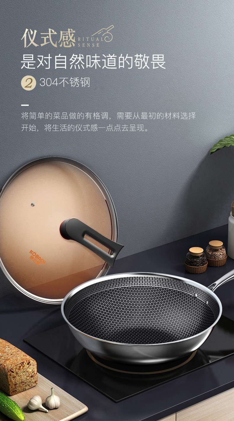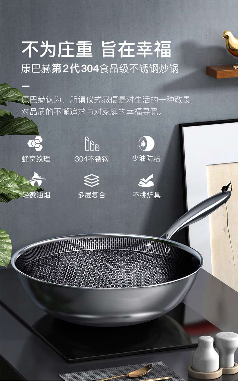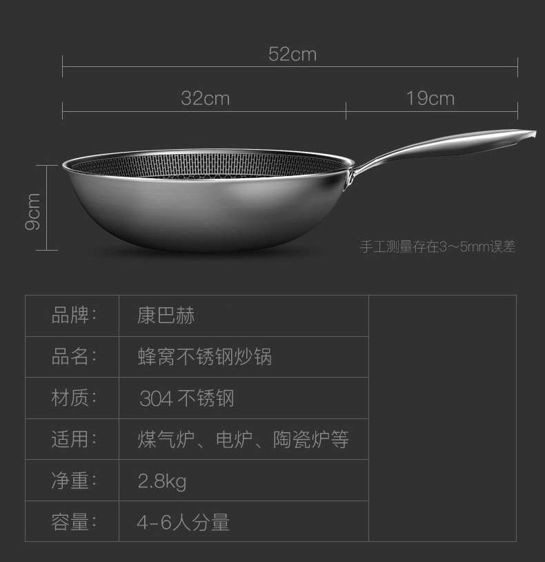 康巴赫精英款蜂窝304炒锅32cm(2代同款) CLK32D12