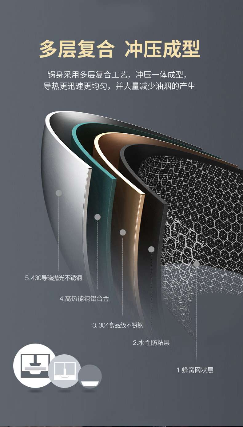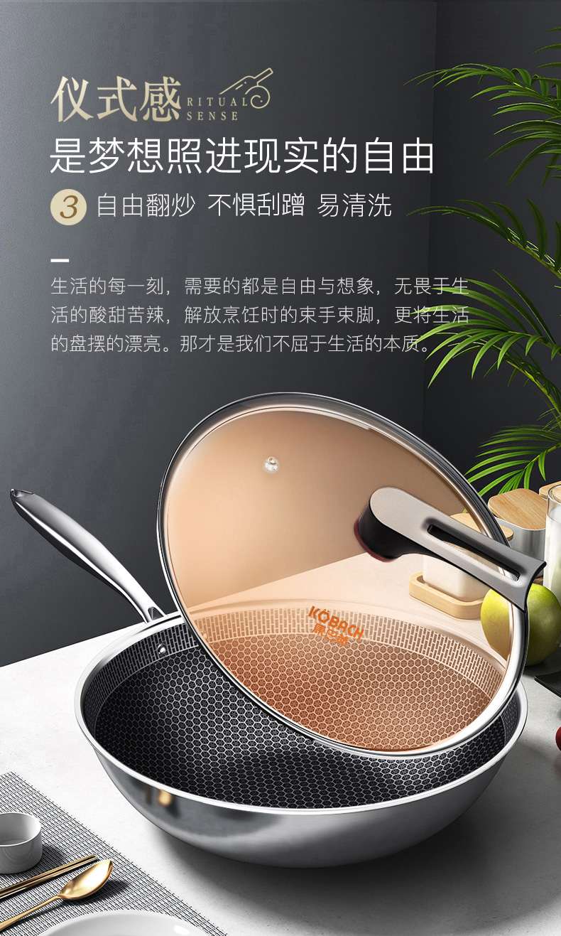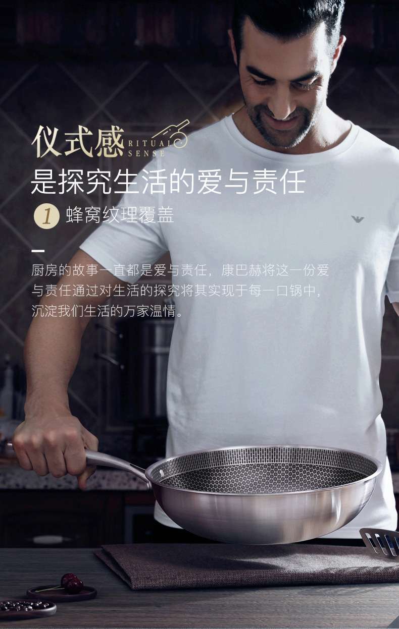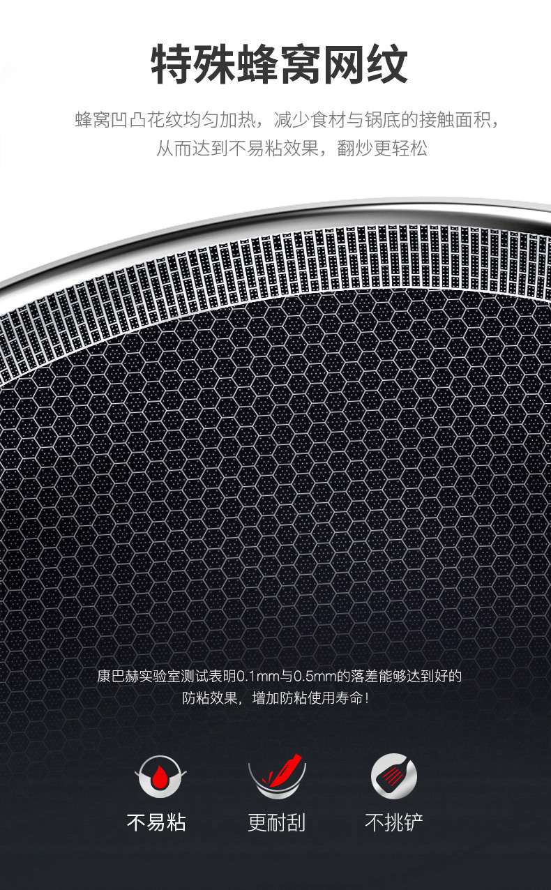 康巴赫精英款蜂窝304炒锅32cm(2代同款) CLK32D12