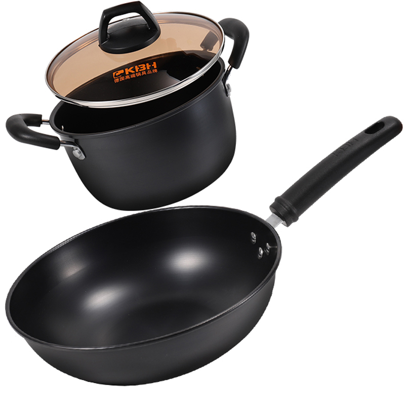 康巴赫真不锈精铁两件套(30cm炒锅无盖+20cm汤锅带盖)KJT2A
