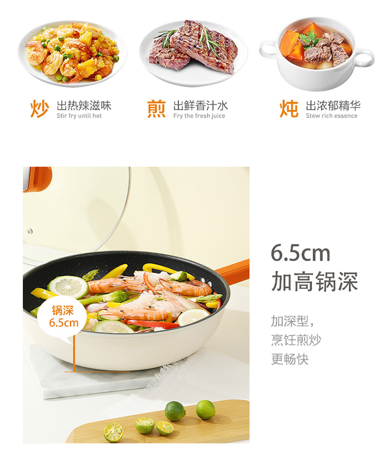 德世朗DESLON 锦“橙”精铁不粘炒锅 30cm DFS-C936