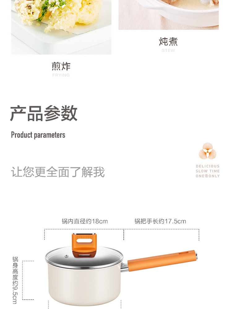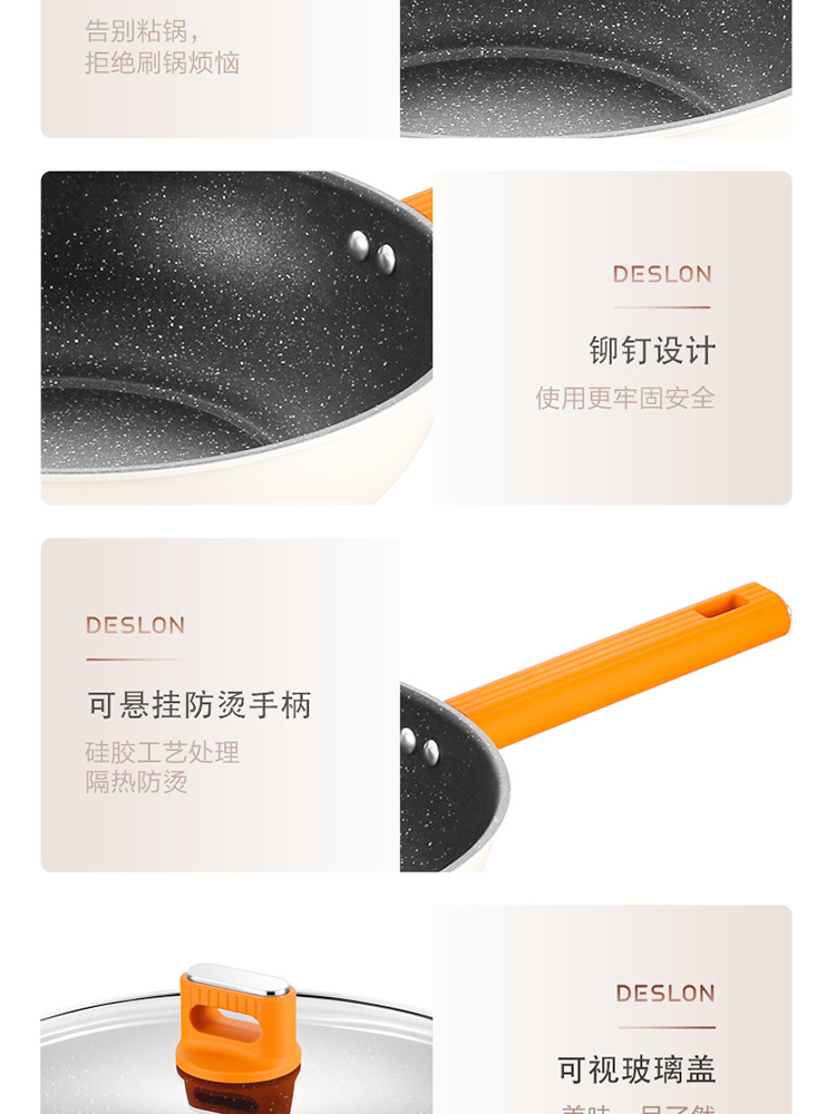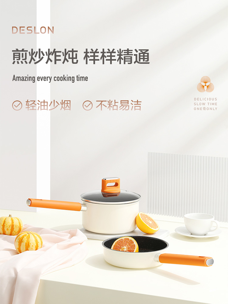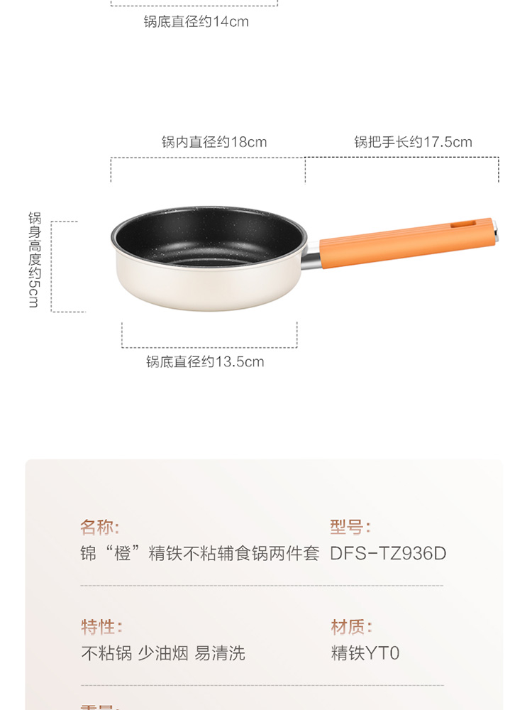 德世朗(DESLON)锦“橙”精铁不粘辅食锅两件套 18cm奶锅、18cm煎锅 DFS-TZ936D
