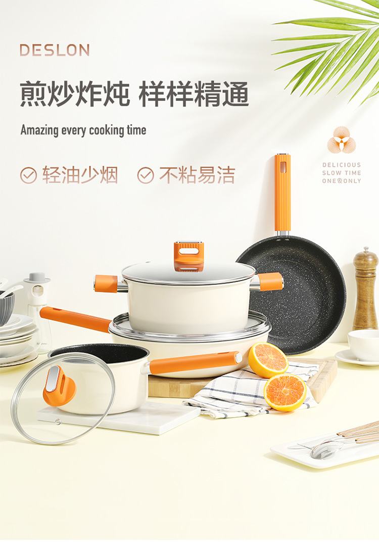 德世朗锦“橙”精铁不粘锅四件套30cm炒锅 24cm汤锅 24cm煎锅 18cm奶锅 DFS-TZ936C