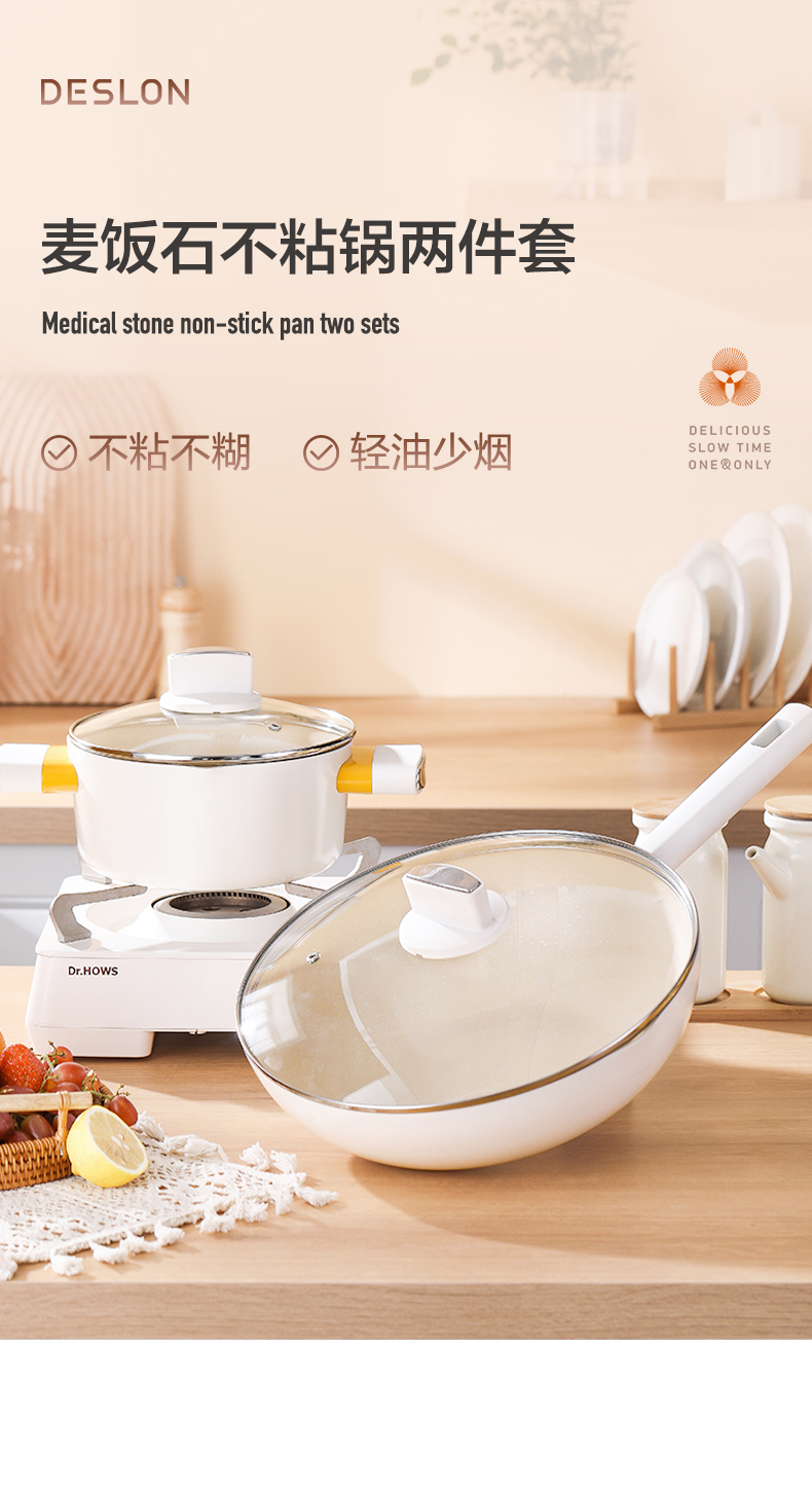 德世朗(DESLON) 银月麦饭石不粘锅两件套30cm炒锅 20cm汤锅 DFS-TZ952A