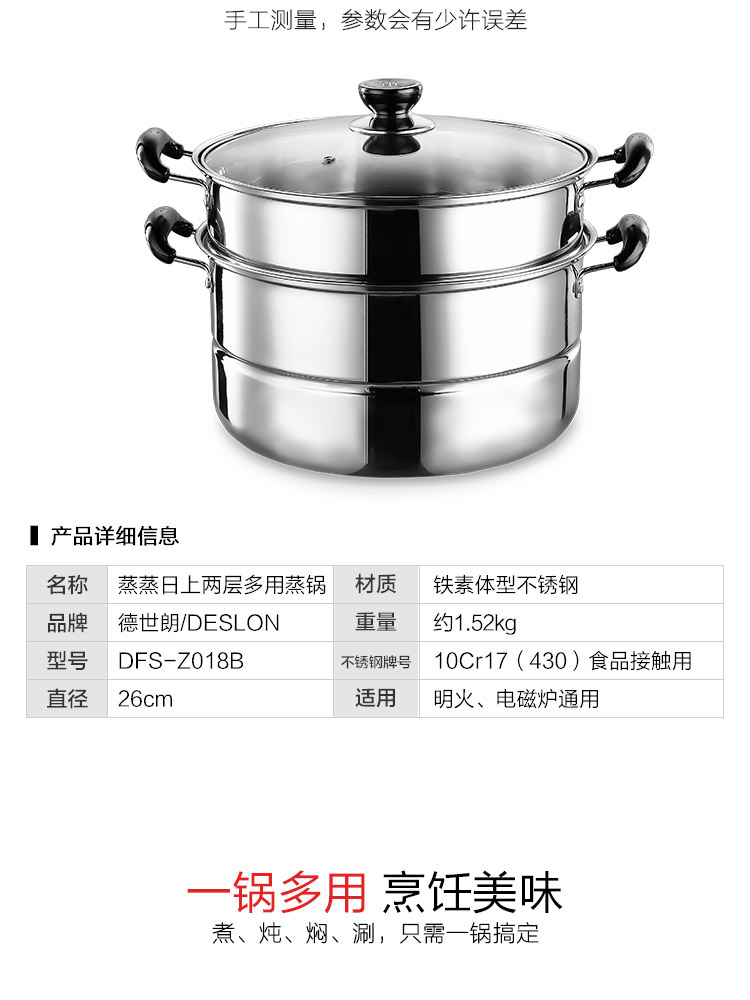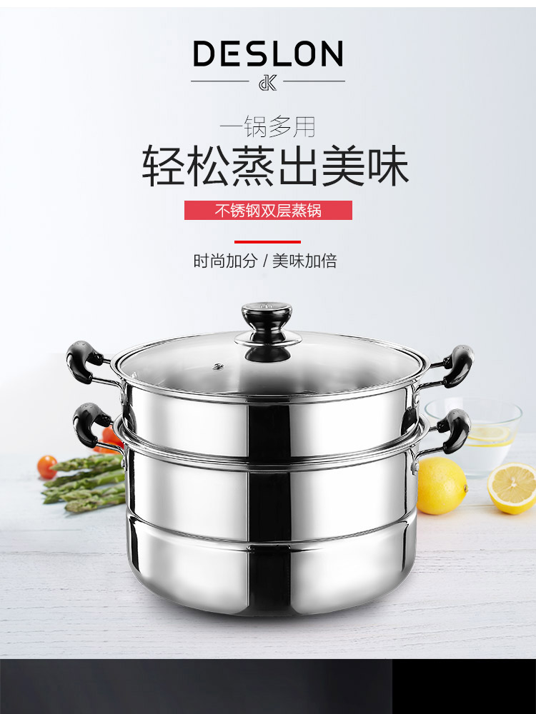 德世朗(DESLON)蒸蒸日上两层多用蒸锅(瓦楞盒)直径26cm DFS-Z018B-WLH