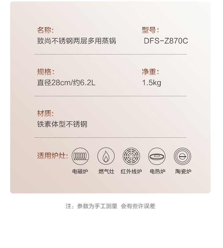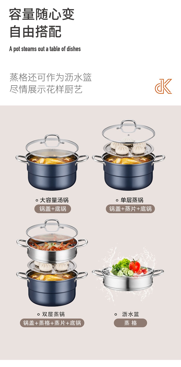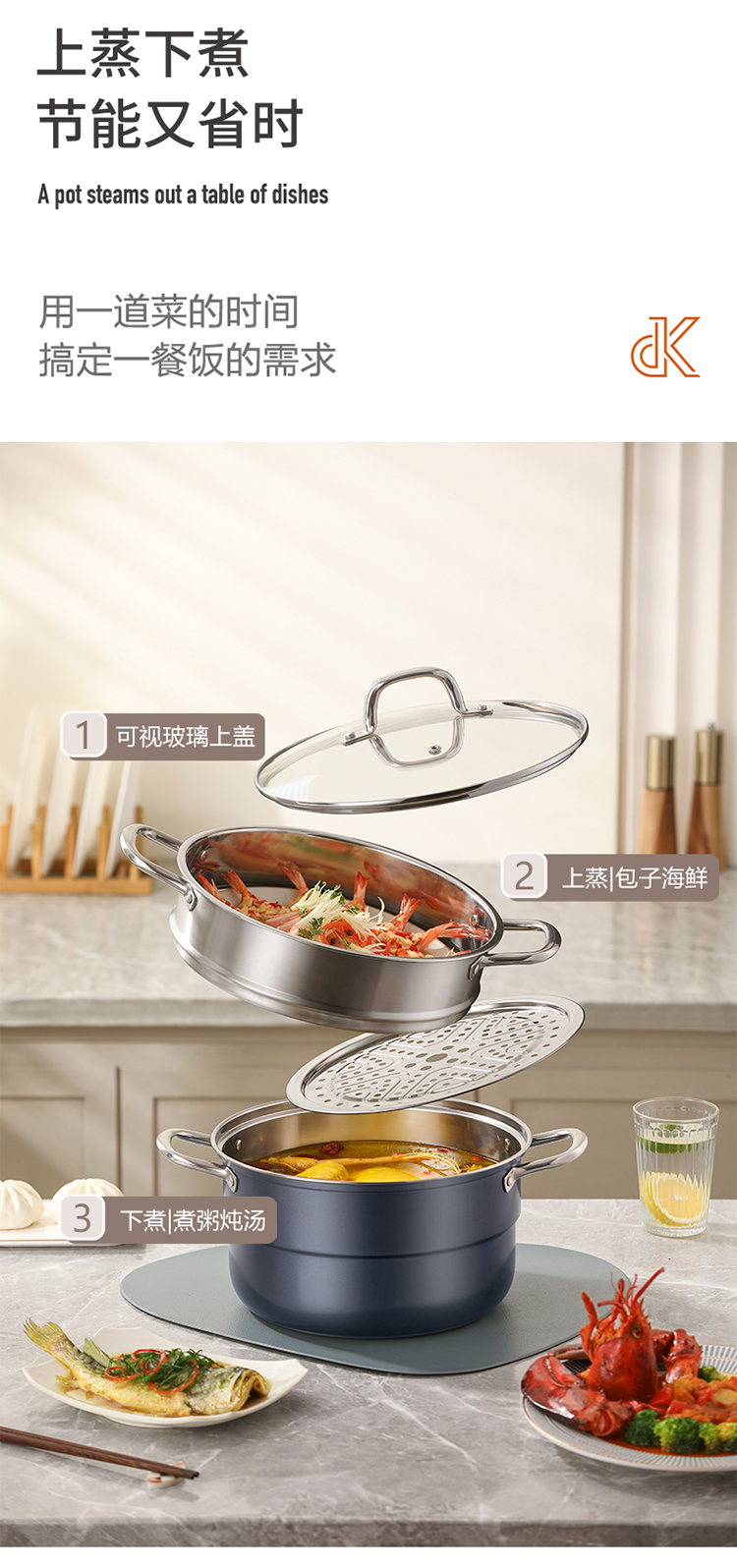 德世朗致尚不锈钢两层多用蒸锅28cm DFS-Z870C