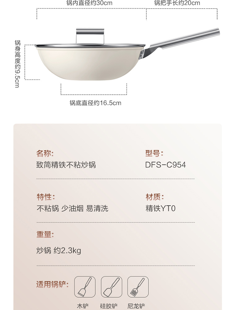 德世朗 致简精铁不粘炒锅30cm DFS-C954