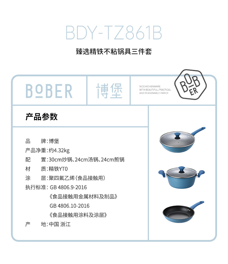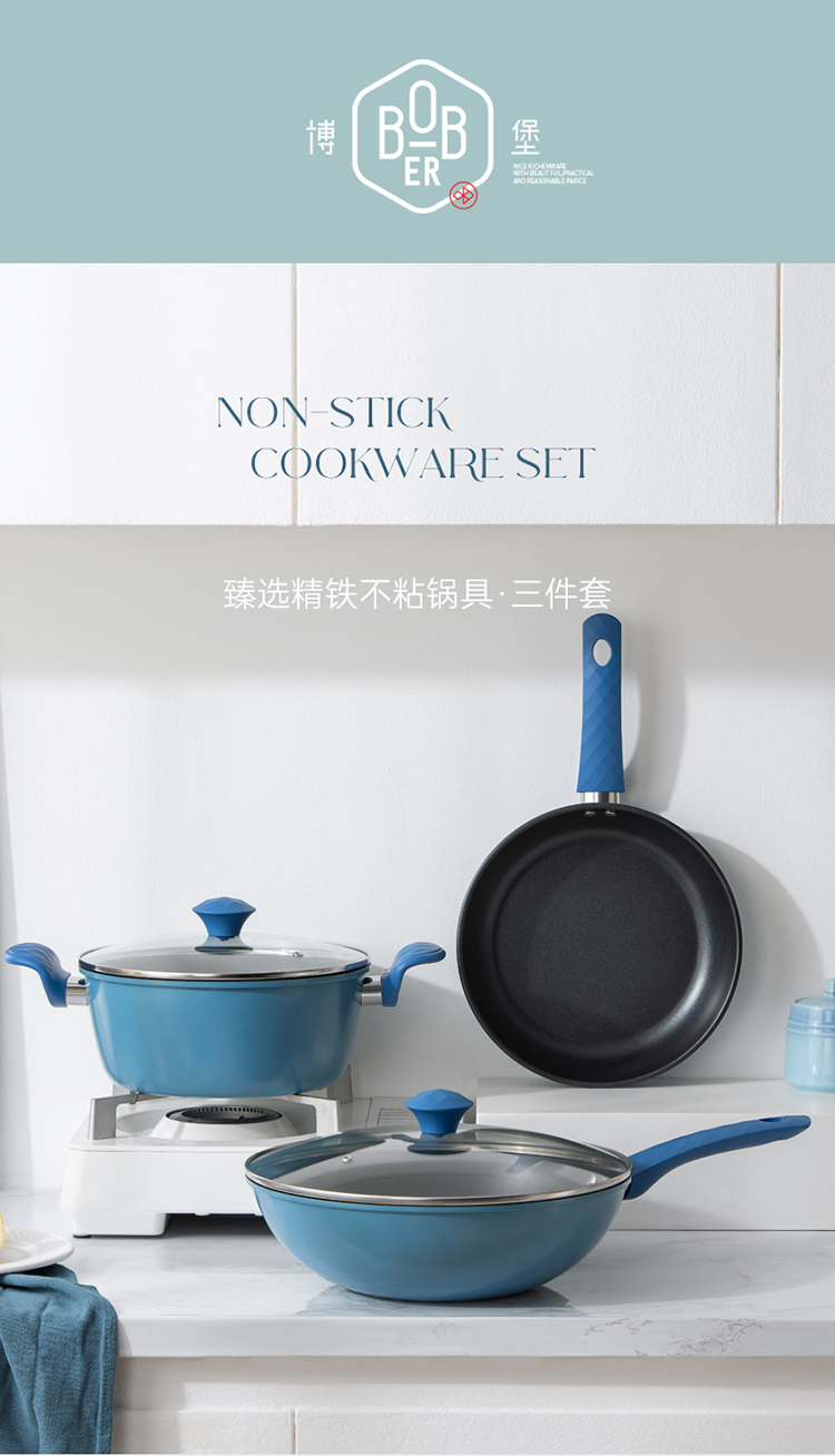 博堡臻选精铁不粘锅具三件套BDY-TZ861B 臻选 3件套