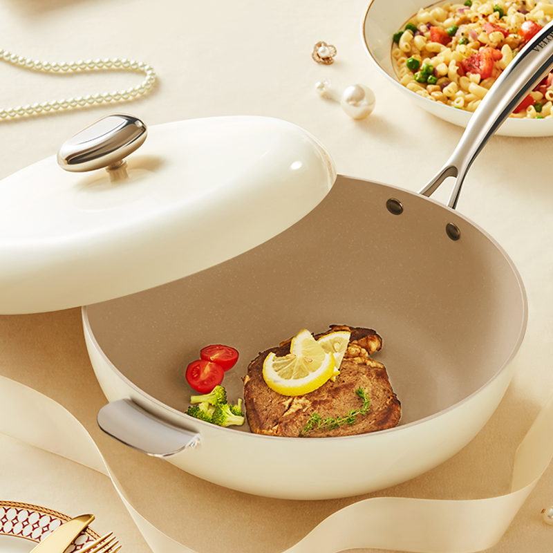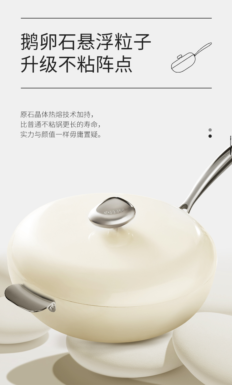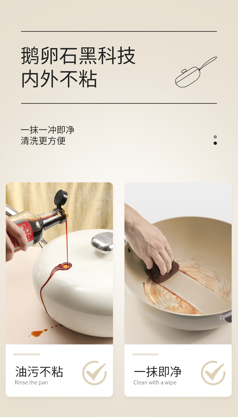 采用悬浮不粘技术,炒菜丝滑,内外不粘。