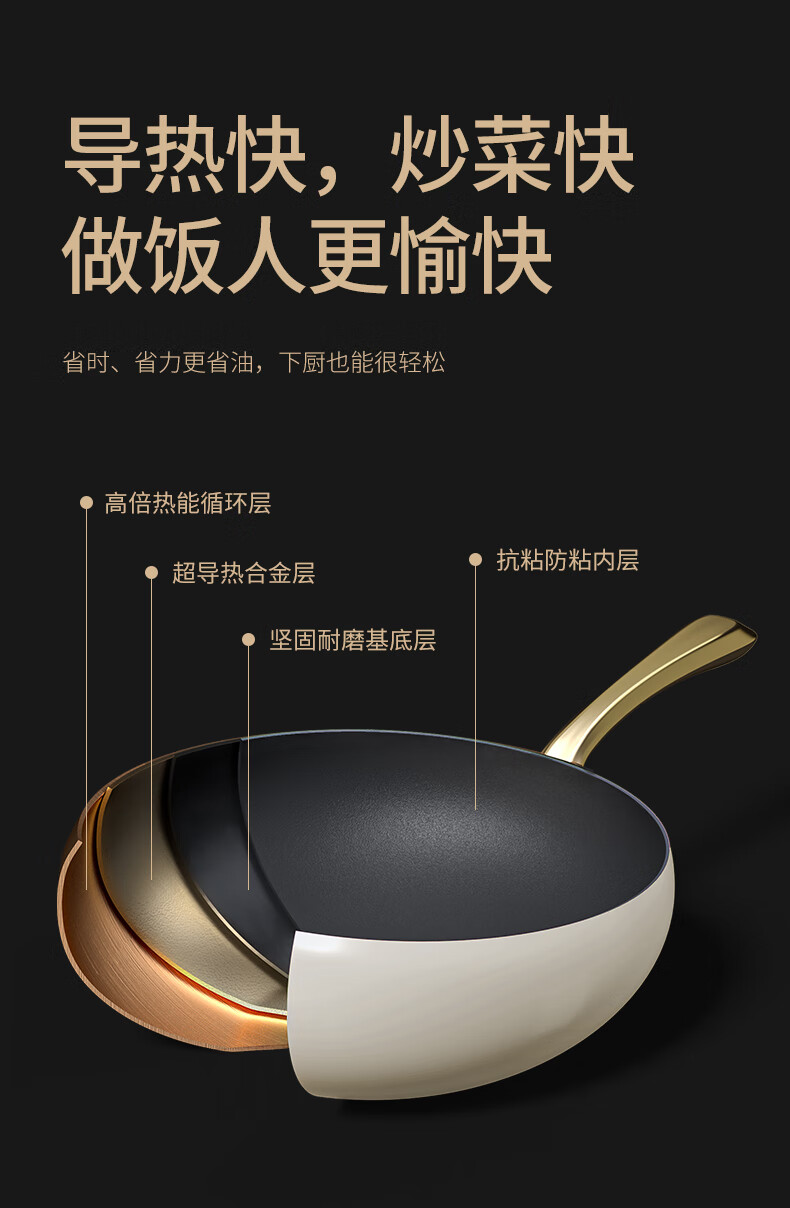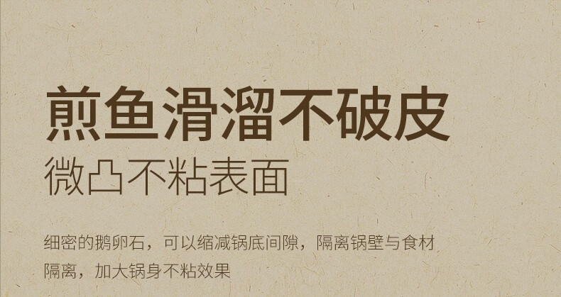 锅内表面细密微凸点阵,加大防粘密度,国标I级持久不粘。