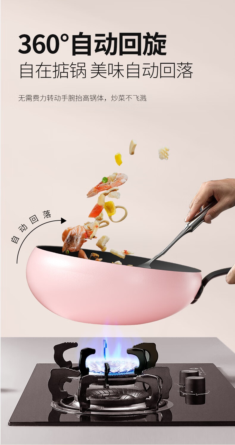 360°自动回旋,自在掂锅,炒菜不飞溅。