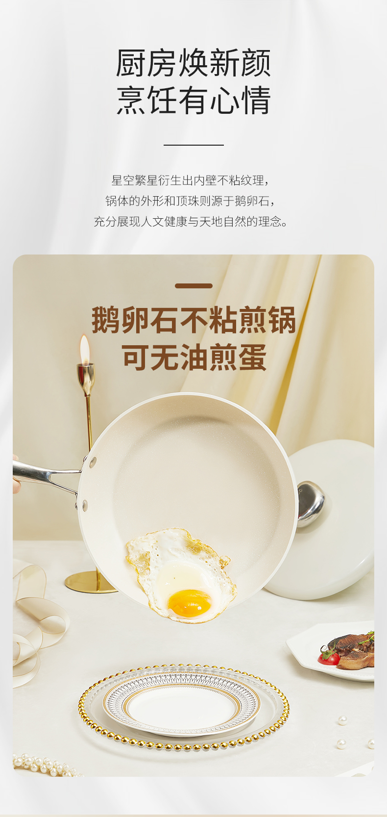 推荐理由:清新色系,造型独特,丝滑不粘。京东评价1万+,天猫平底锅预售榜TOP1,天猫行业超级单品。