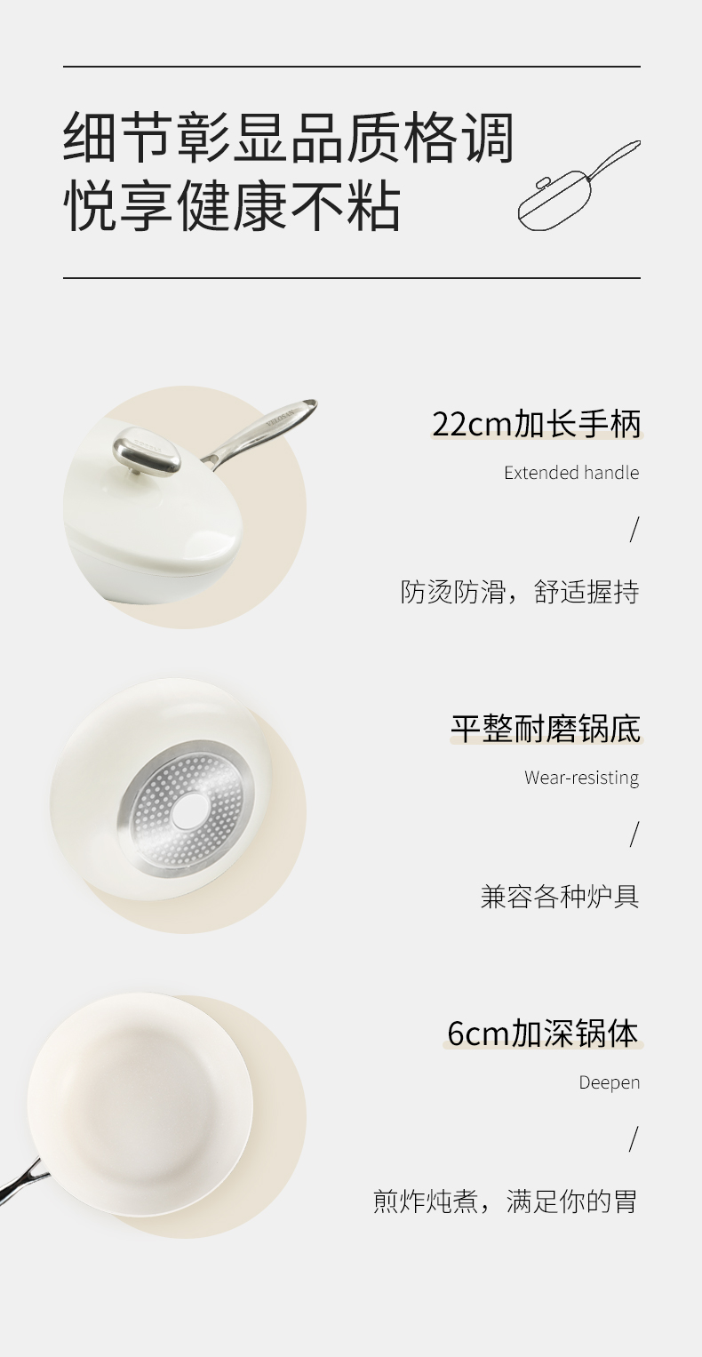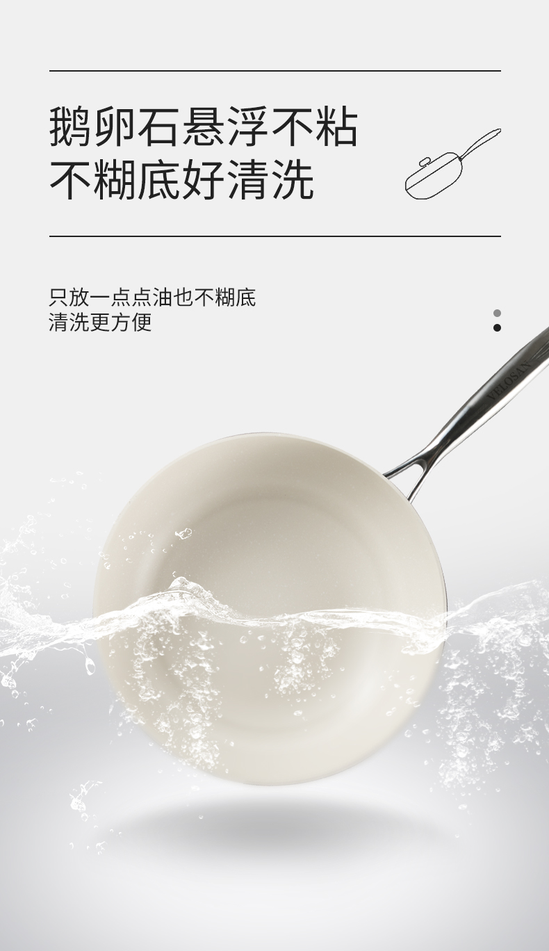 采用悬浮不粘技术,炒菜丝滑,丝毫不粘。