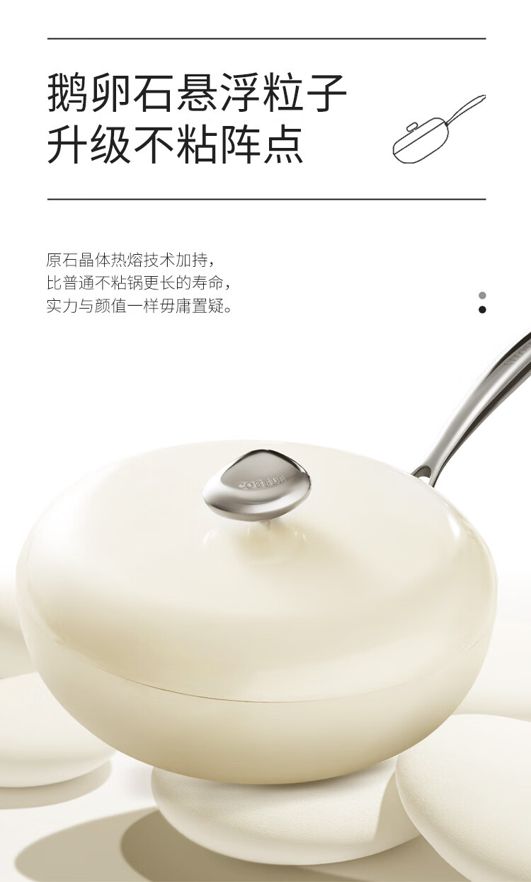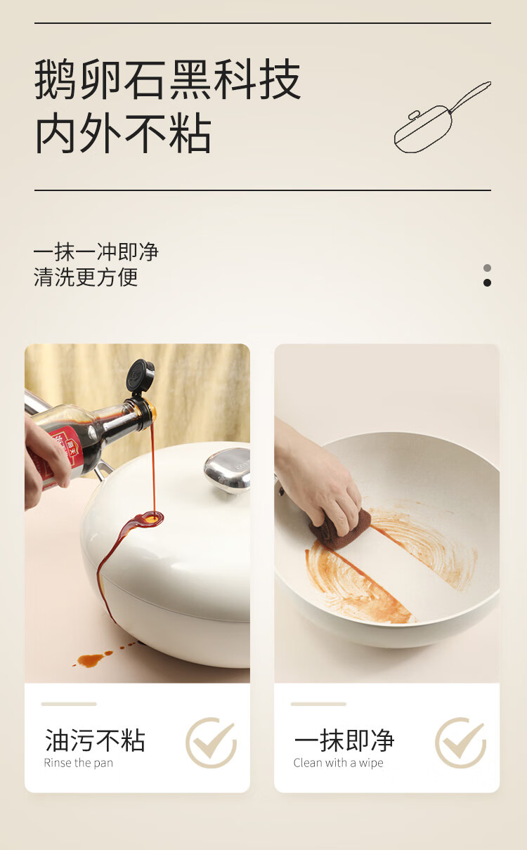 采用悬浮不粘技术,炒菜丝滑,丝毫不粘。