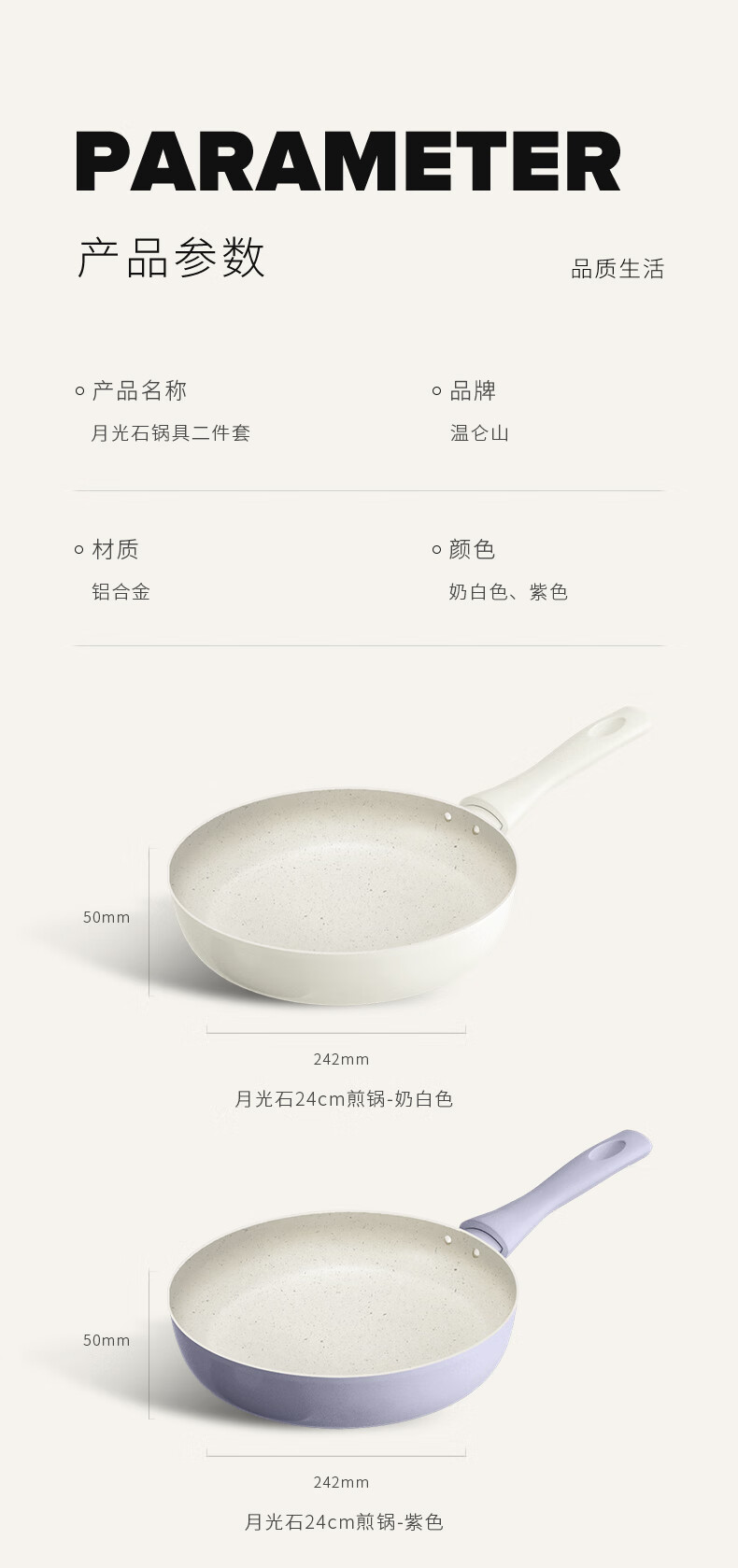 【材质】铝合金+钢化玻璃 【规格】煎锅24cm、奶锅18cm
