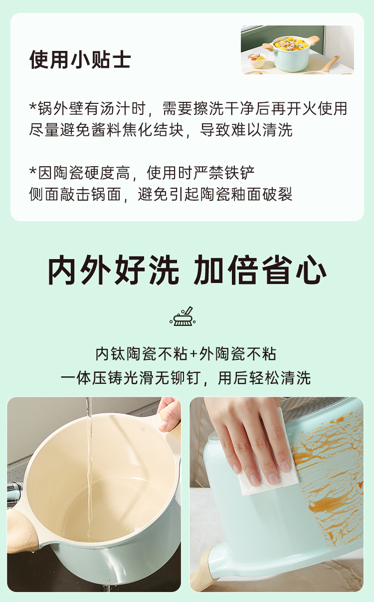 1、有钛陶瓷耐磨不粘健康的宝宝辅食锅。