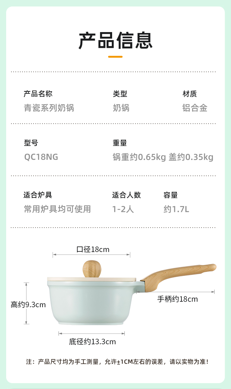 炊大皇青瓷不粘奶锅18cmQC18NG