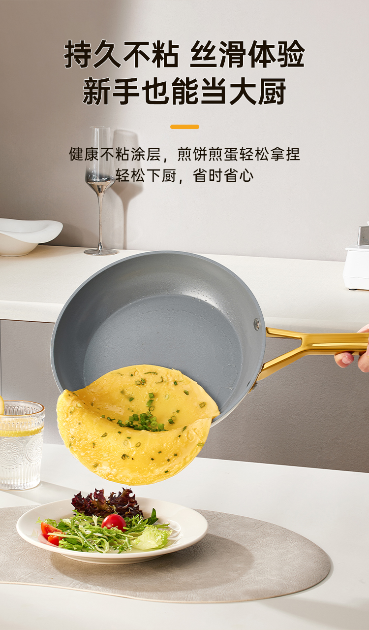 1、国标I级不粘锅具,不止耐用白色更显高级 现代化厨房标配,健康不粘涂层,煎饼煎蛋轻松拿捏轻松下厨,省时省心。