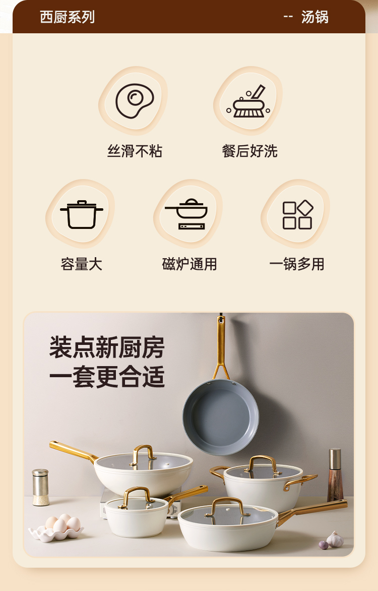 3、炉灶全兼容换灶不换锅,持久不粘清洗容易餐后清洁更省时。