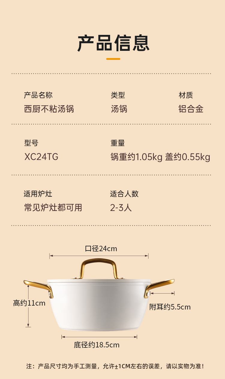 2、大容量汤锅更实用,煲汤煮面涮小火锅,一口锅多用种途,防烫双把手端锅不烫手。