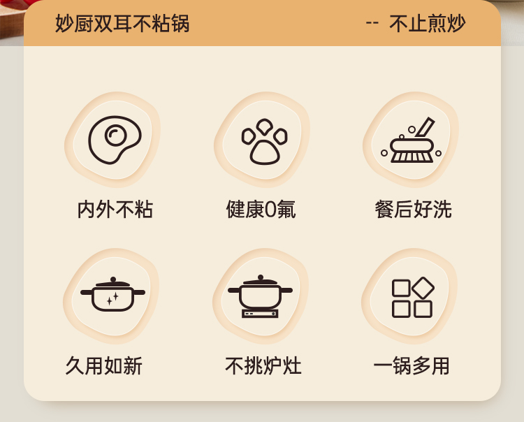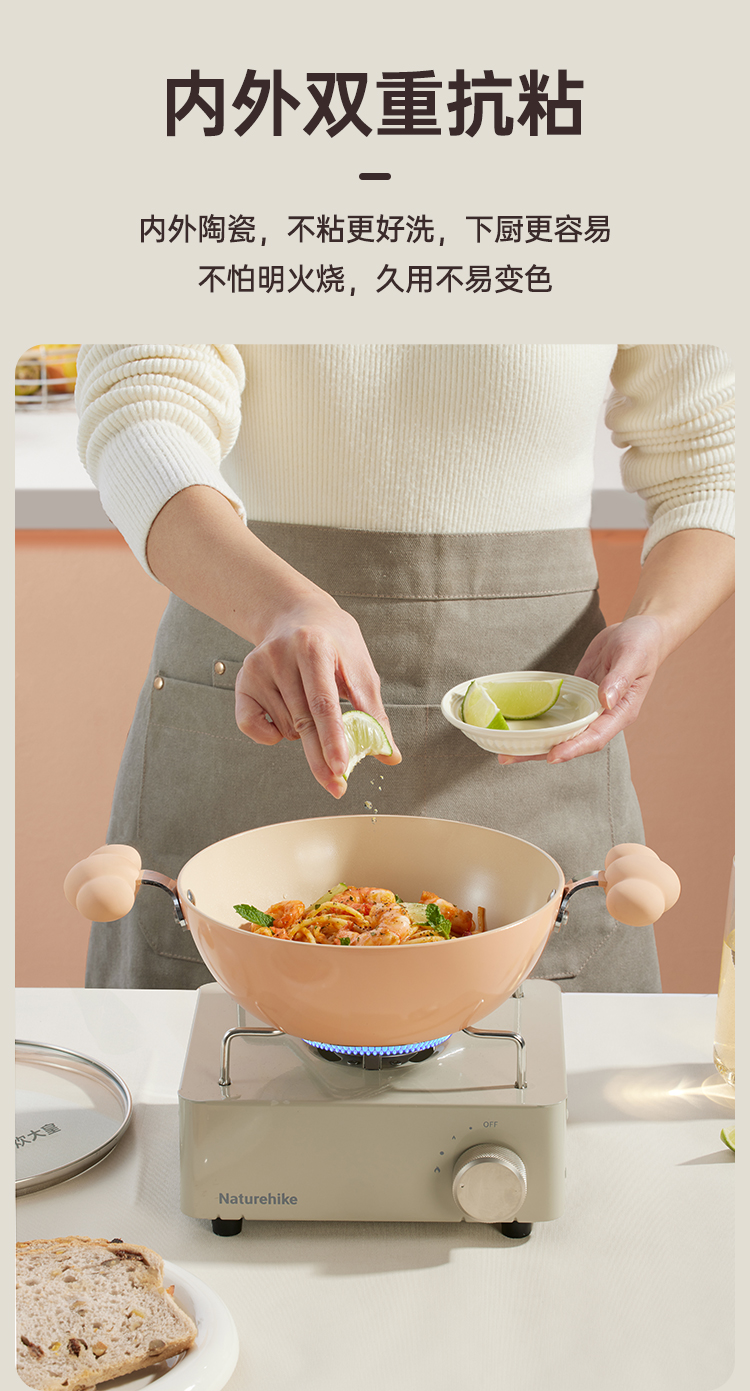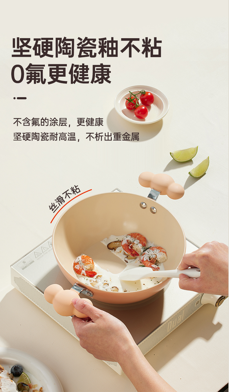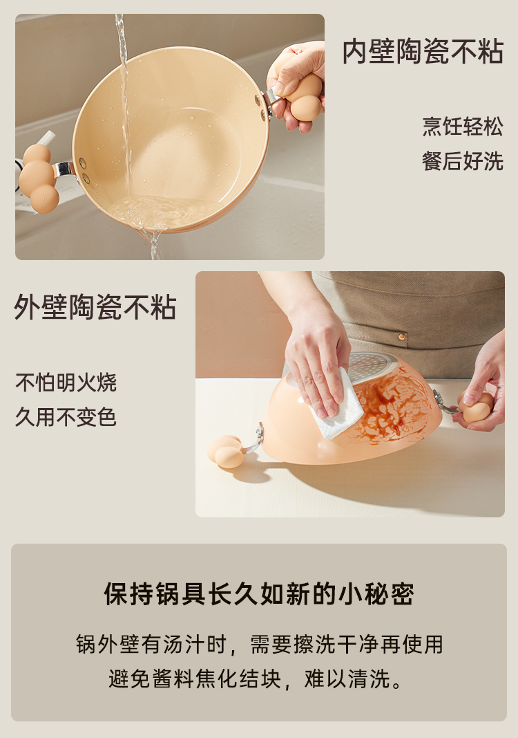 1、坚硬陶瓷釉不粘0氟更健康,内外陶瓷,不粘更好洗,下厨更容易不怕明火烧,久用不易变色。