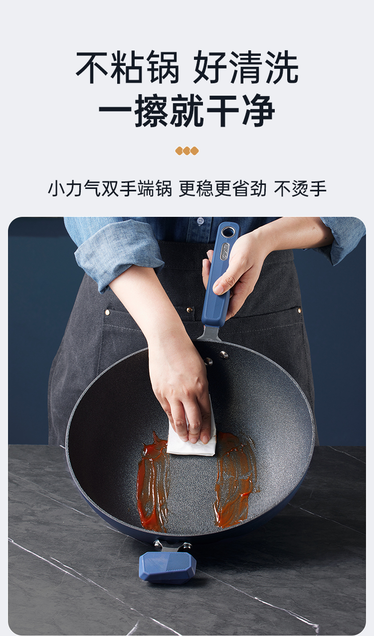 1、不止无油烟不粘实力更强涂层不粘+物理不粘下厨拒绝粘锅,高难度菜品不再翻车。