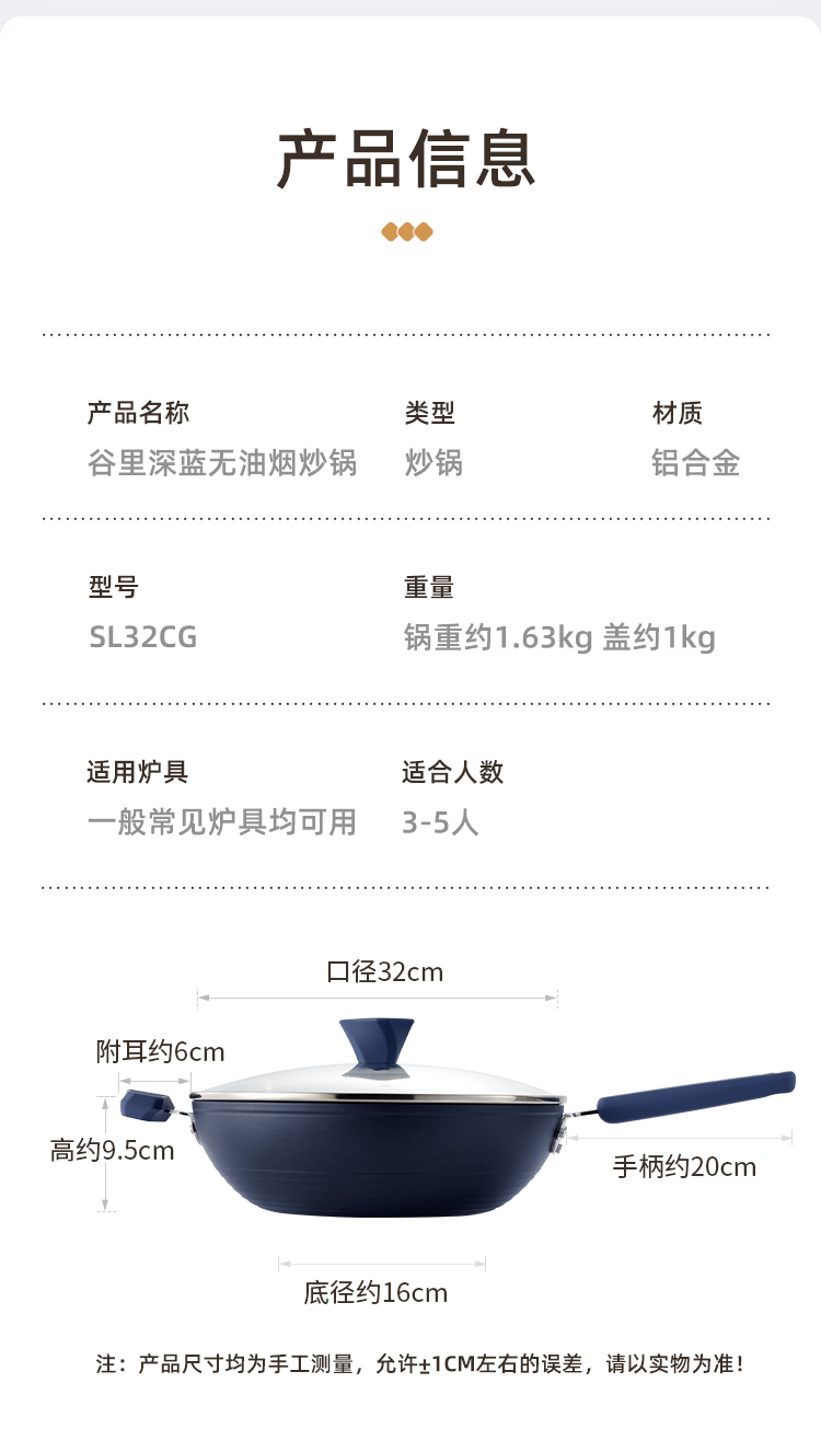 炊大皇谷里深蓝无油烟炒锅32cmSL32CG