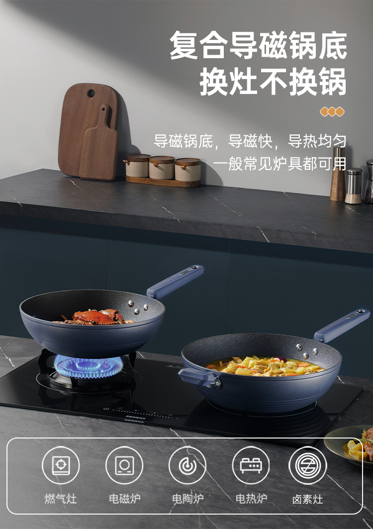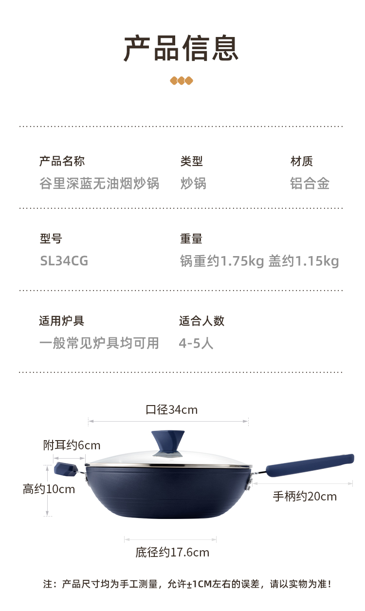 炊大皇谷里深蓝无油烟炒锅34cmSL34CG