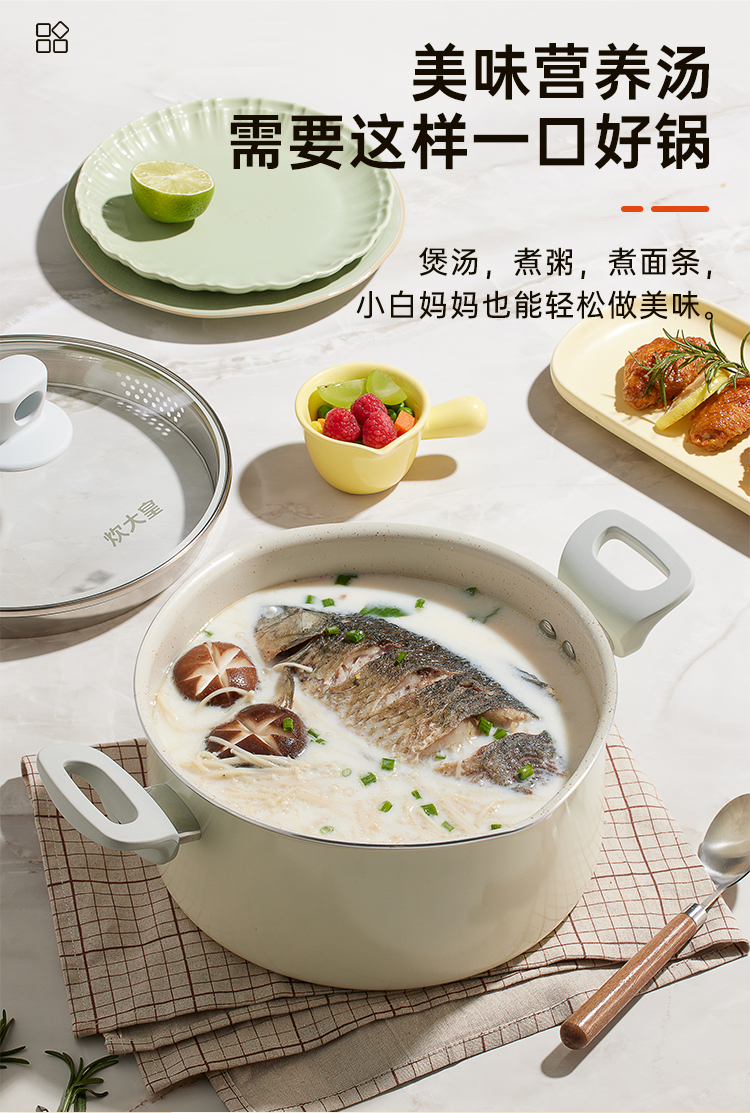 2、美味营养汤需要这样一口好锅,防烫手胶木双耳柄,好端锅,美味趁热享用。