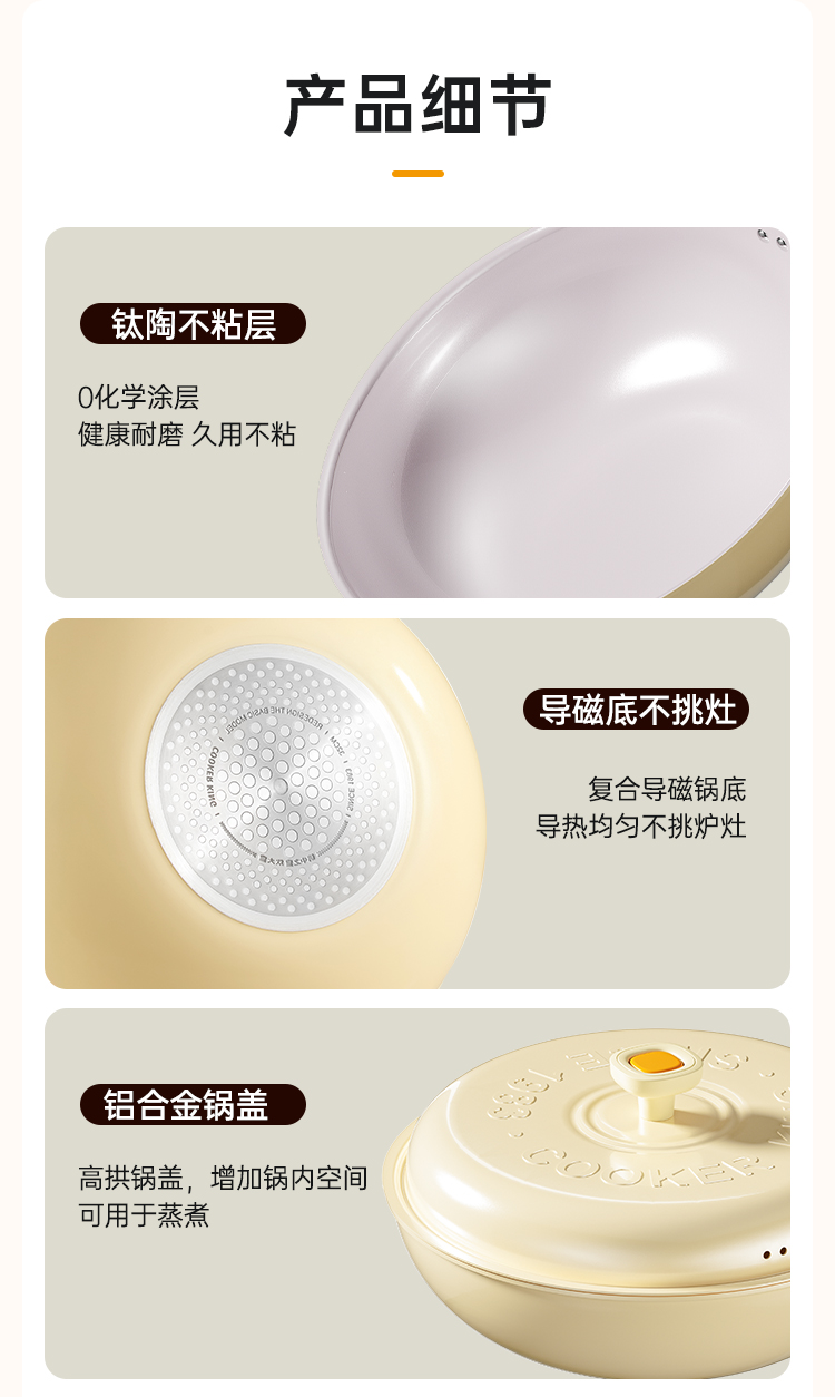 3、钛与瓷的结合是1+1>2的效果抗刮耐磨,持久不粘,更好清洗。