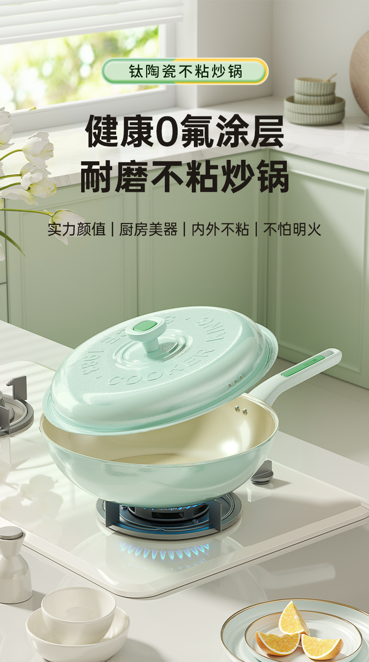 0氟涂层,实力颜值内外不粘轻烟少油。
