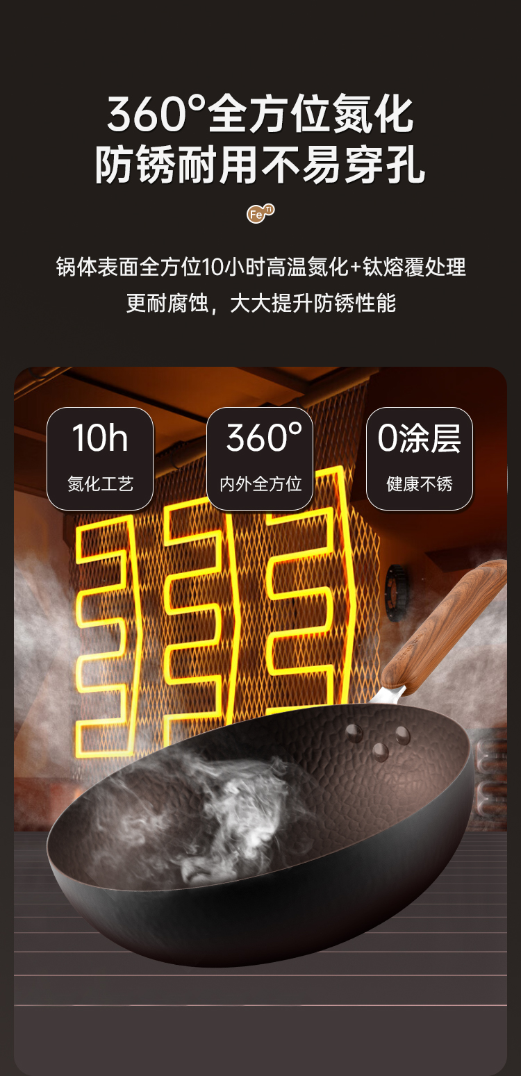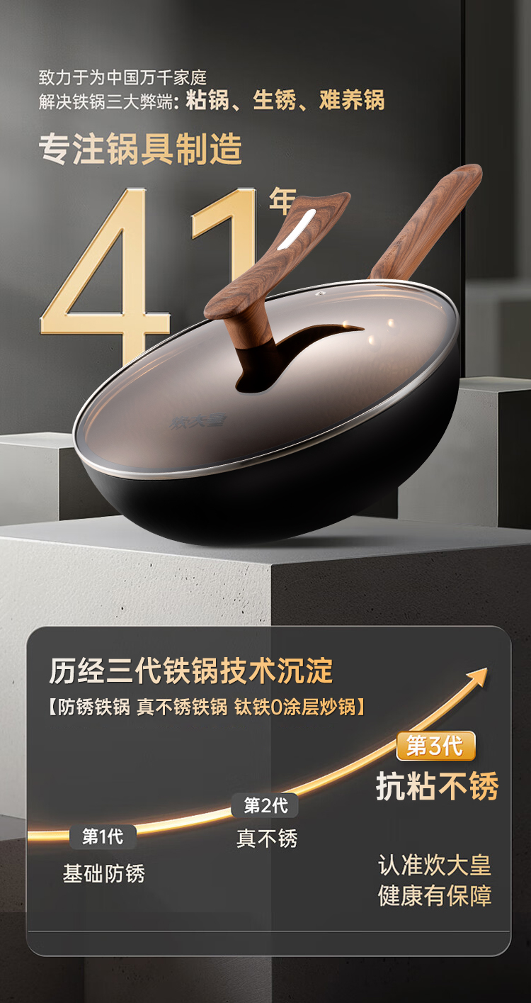 2、开创铁锅“抗粘”新时代解决传统铁锅弊端。