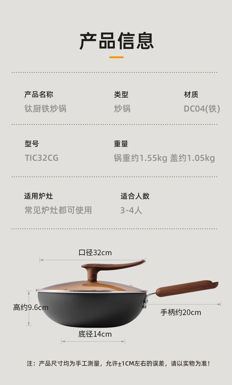 炊大皇钛厨铁炒锅32cmTIC32CG