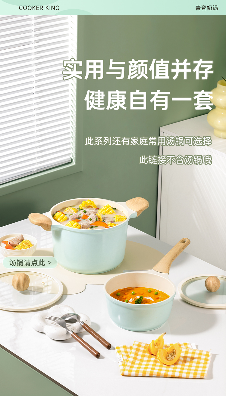 炊大皇青瓷不粘奶锅18cmQC18NG