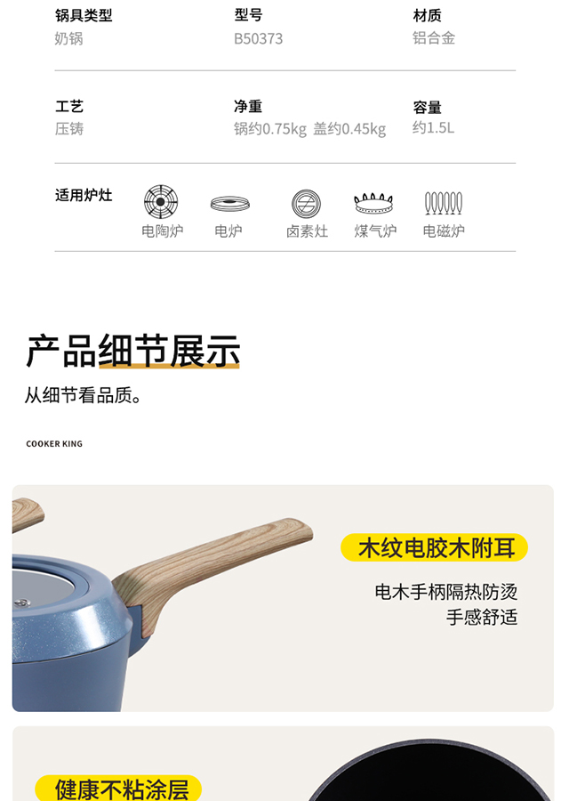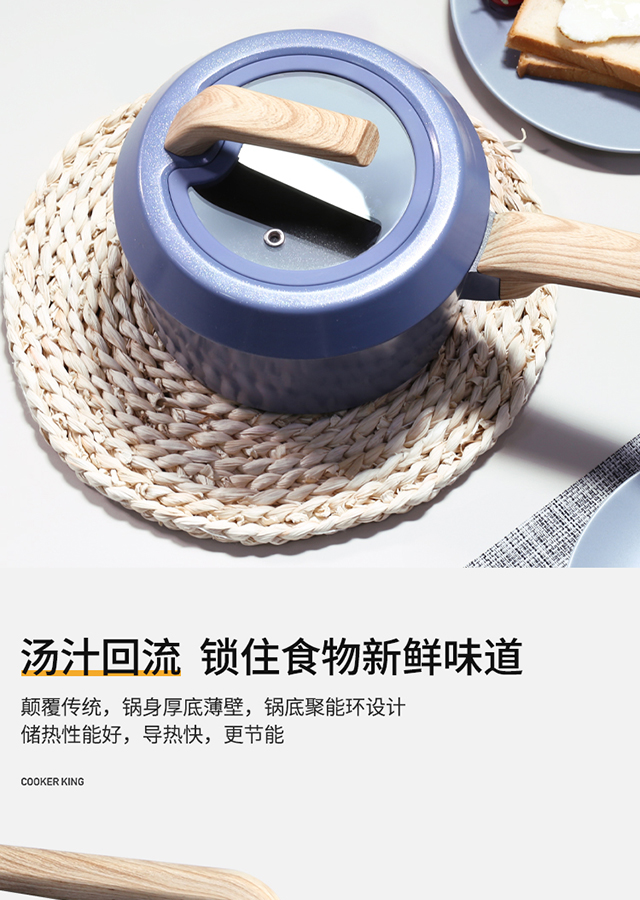 1.时尚奶锅食色煮义,独特造型,尽显高颜值,悦享烹饪时光,高雅雾霾蓝色外壁,美观时尚大方