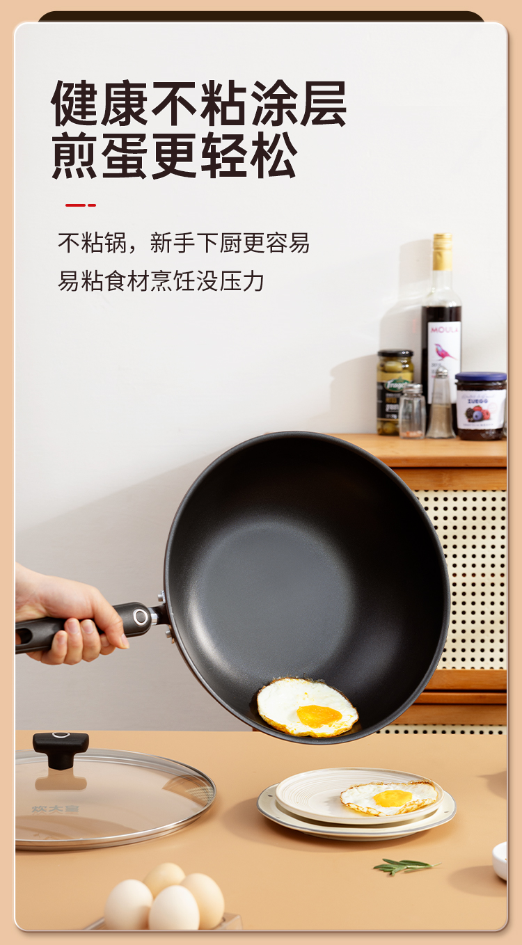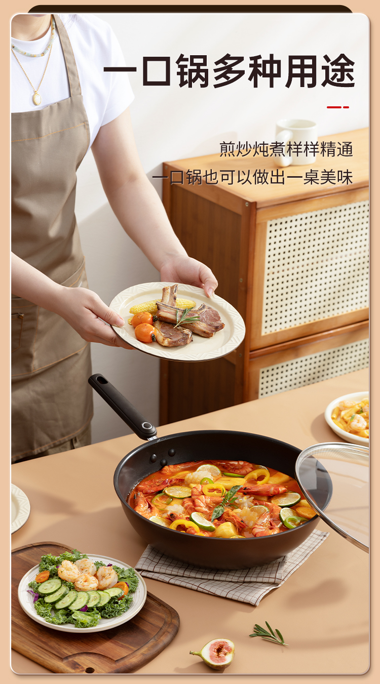 2、健康不粘涂层煎蛋更轻松,煎炒炖煮样样精通口锅也可以做出一桌美味。