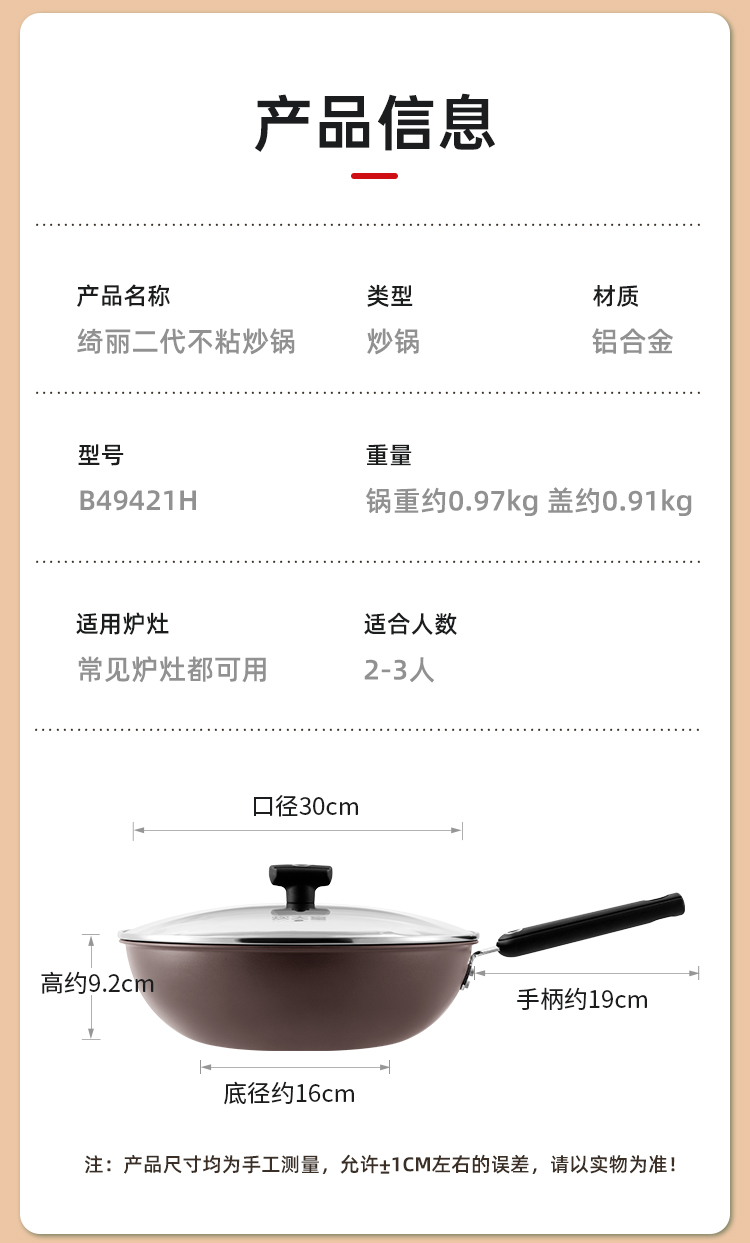 炊大皇绮丽二代不粘炒锅30cmB49421H