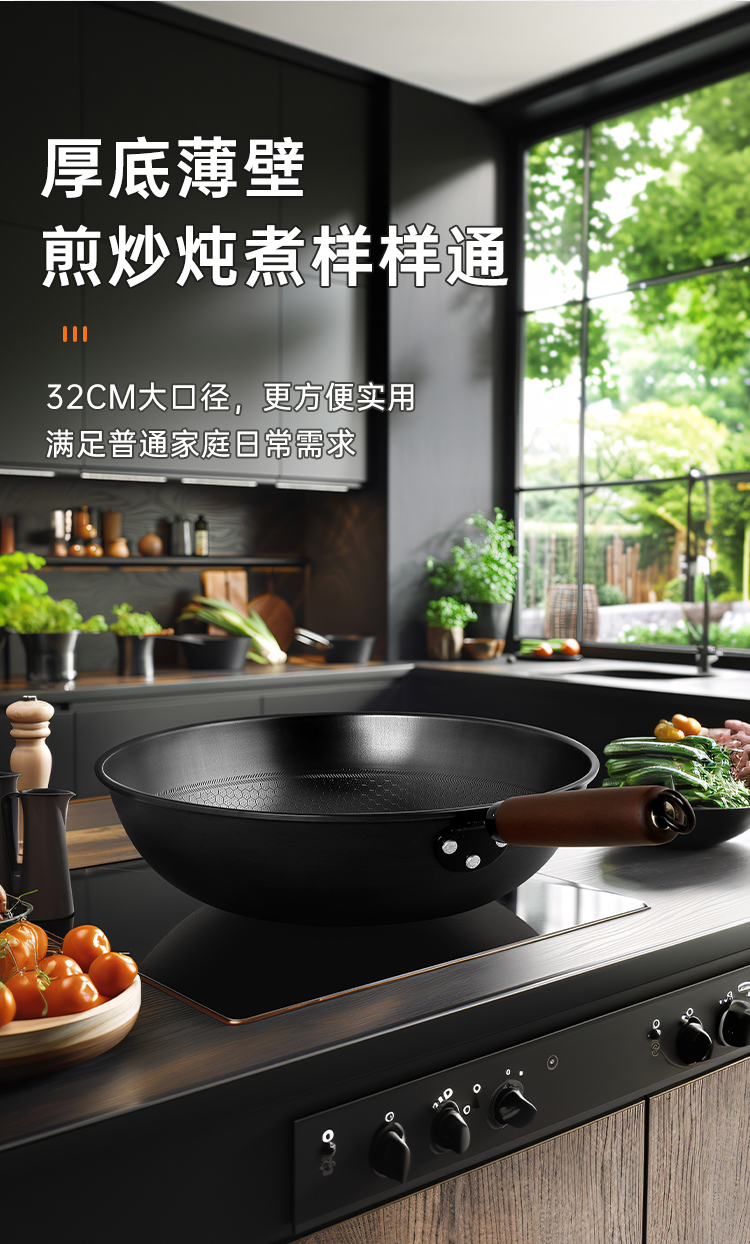 炊大皇玄铁二代炒锅32cmXT32CGH