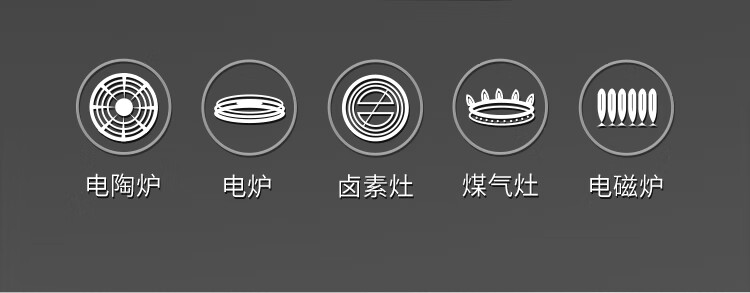 2、适用于电磁炉、燃气灶、电陶炉。电热炉等多种烹饪热源。