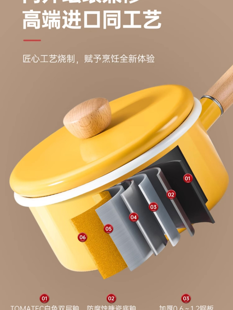 1、采用日本进口材料,珐琅工艺,返璞归真,经久耐用,抗酸碱防腐蚀,安心烹饪每一餐。