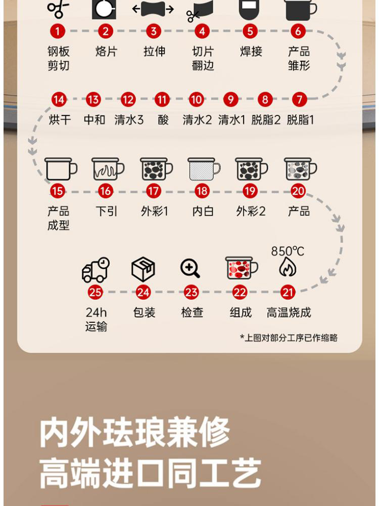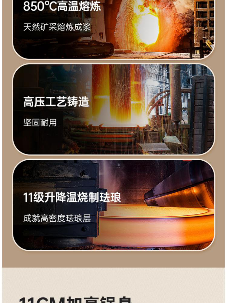 1、采用日本进口材料,珐琅工艺,返璞归真,经久耐用,抗酸碱防腐蚀,安心烹饪每一餐。