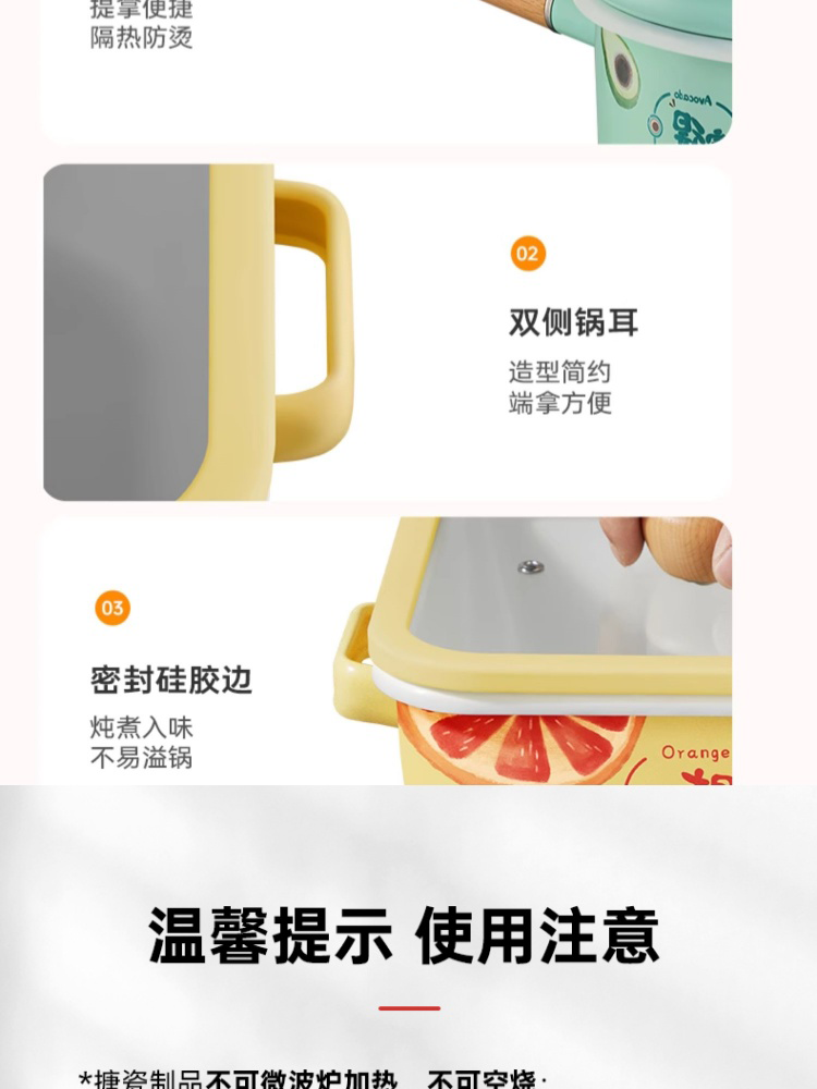 1、福气水果印花,打破厨房沉闷,注入清甜元气,日本进口珐琅釉,安全健康宝宝爱。