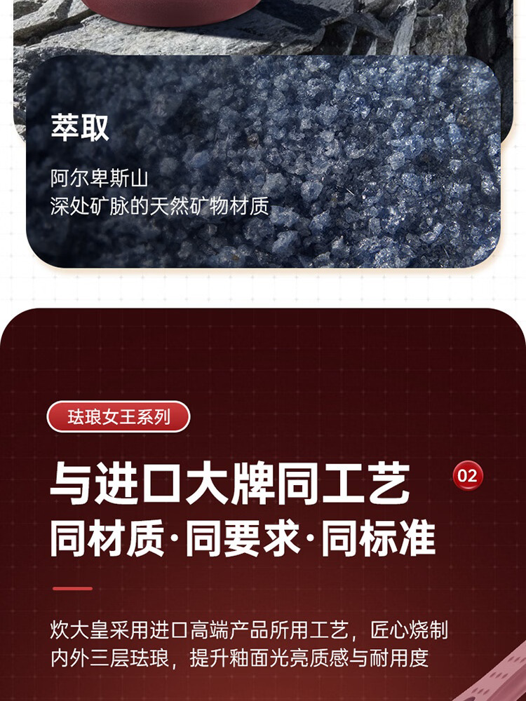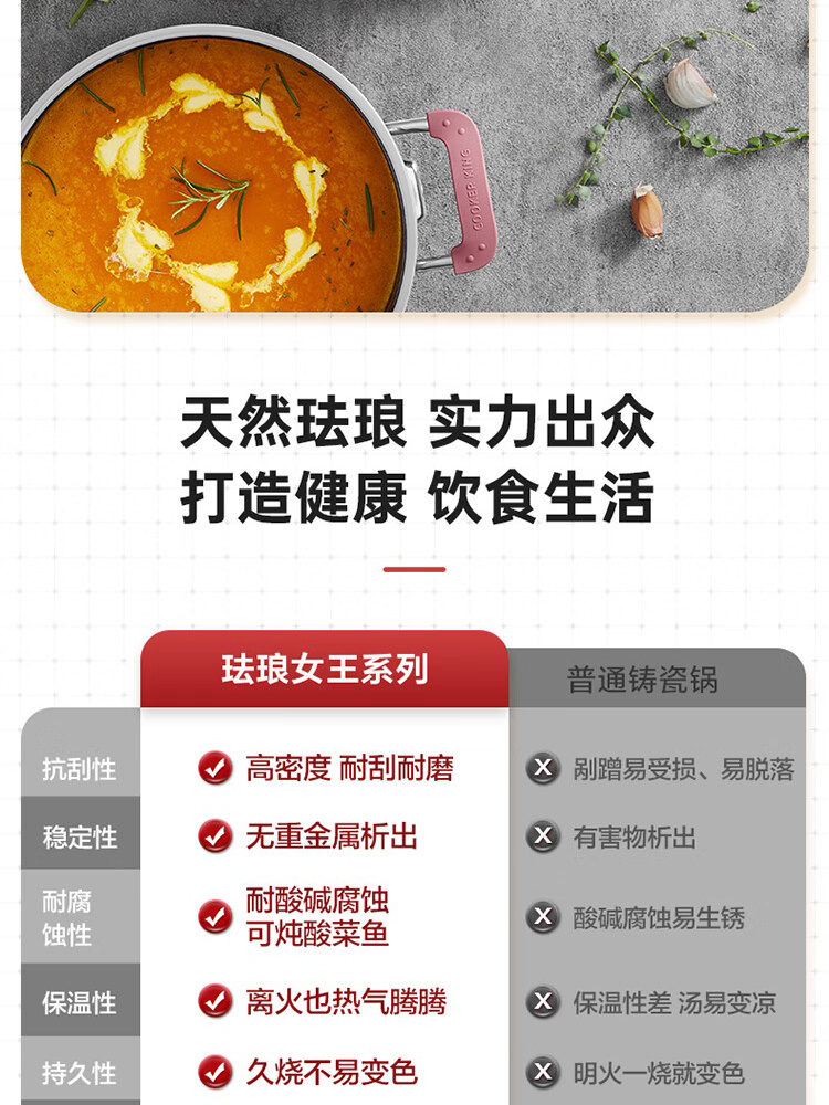 1、采用进口高端产品所用工艺,匠心烧制内外三层珐琅,提升釉面光亮质感与耐用度,真正0涂层
