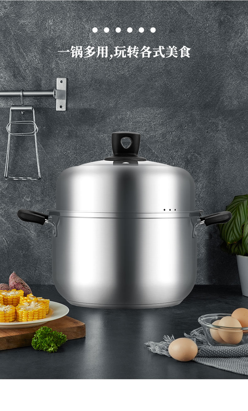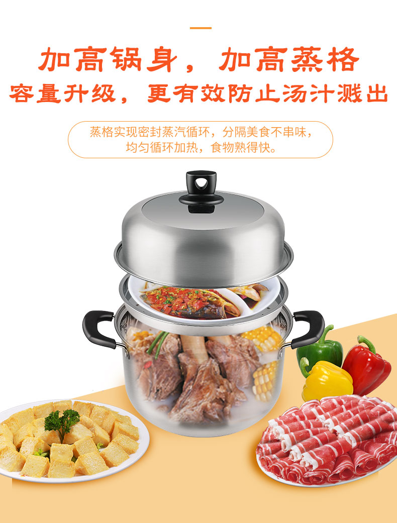 2 加高锅身,加高蒸格,容量升级,更有效防止汤汁溅出;