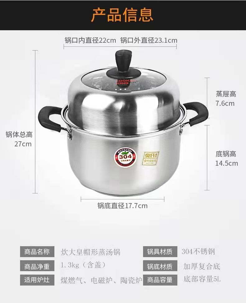 炊大皇帽形汤蒸锅CK82015