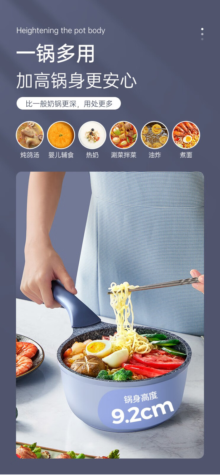 2.烹饪炒煎炖煮都不粘,匀热控油烟下厨清新更健康