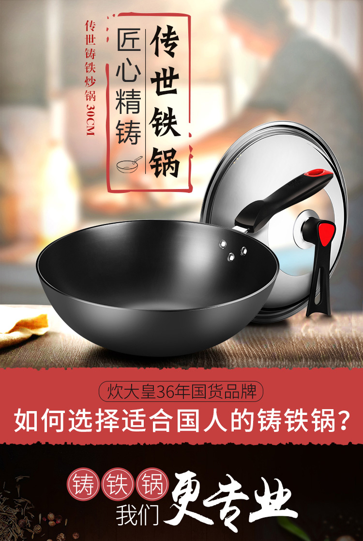 炊大皇传世不锈铸铁炒锅C30D2